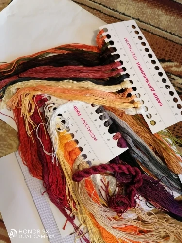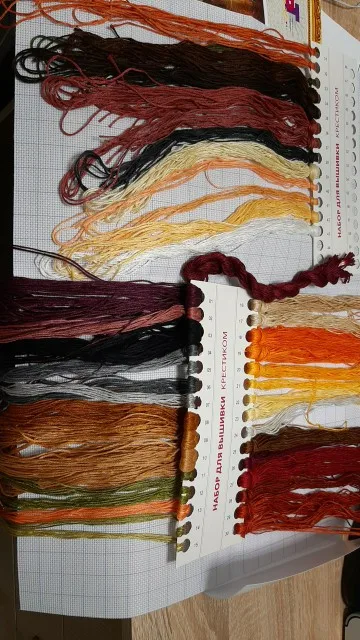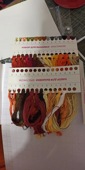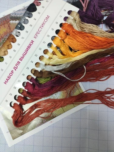 Ниточек много, яркие. Схема мелкая, но цветная, надеюсь справлюсь. Набор пришёл очень быстро. Продавца рекомендую.