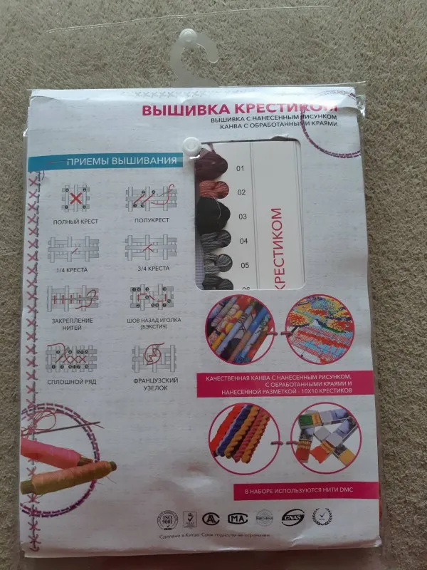 Супер, всё очень быстро отправлено, и пришло за 11 дней в СПб. Канва жёсткая, размечена по 10, все на русском языке, нитки яркие. Класс берите тут.