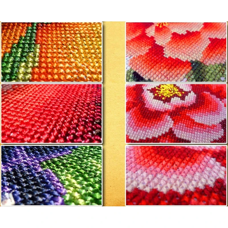 Вышивка яркая хорошая, мне понравились нитки DMC люблю ими вышивать, 40см на 50см, канва разлинована по 10 клеточек, очень удобно. Я довольна, спасибо!