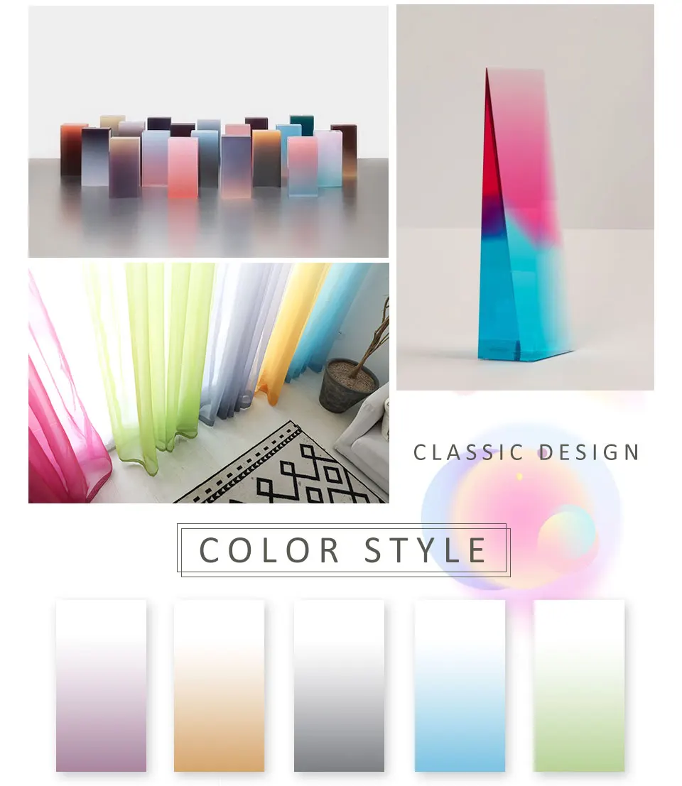 Занавеска из тюля с градиентом, для гостиной, спальни, из органзы