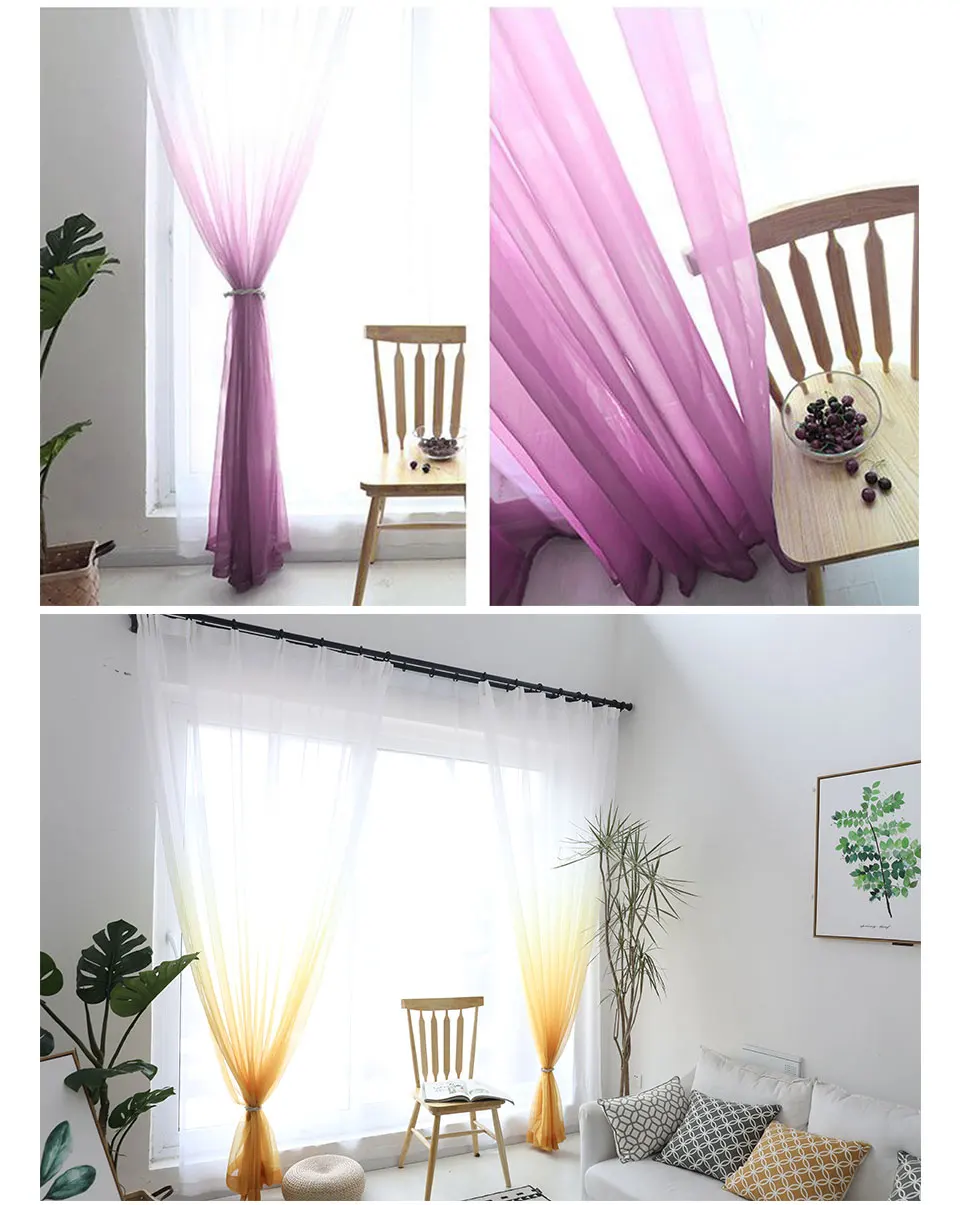 Градиентные шторы для гостиной, спальни, тюлевые прозрачные шторы и...