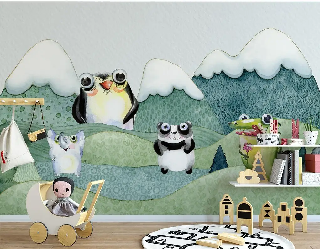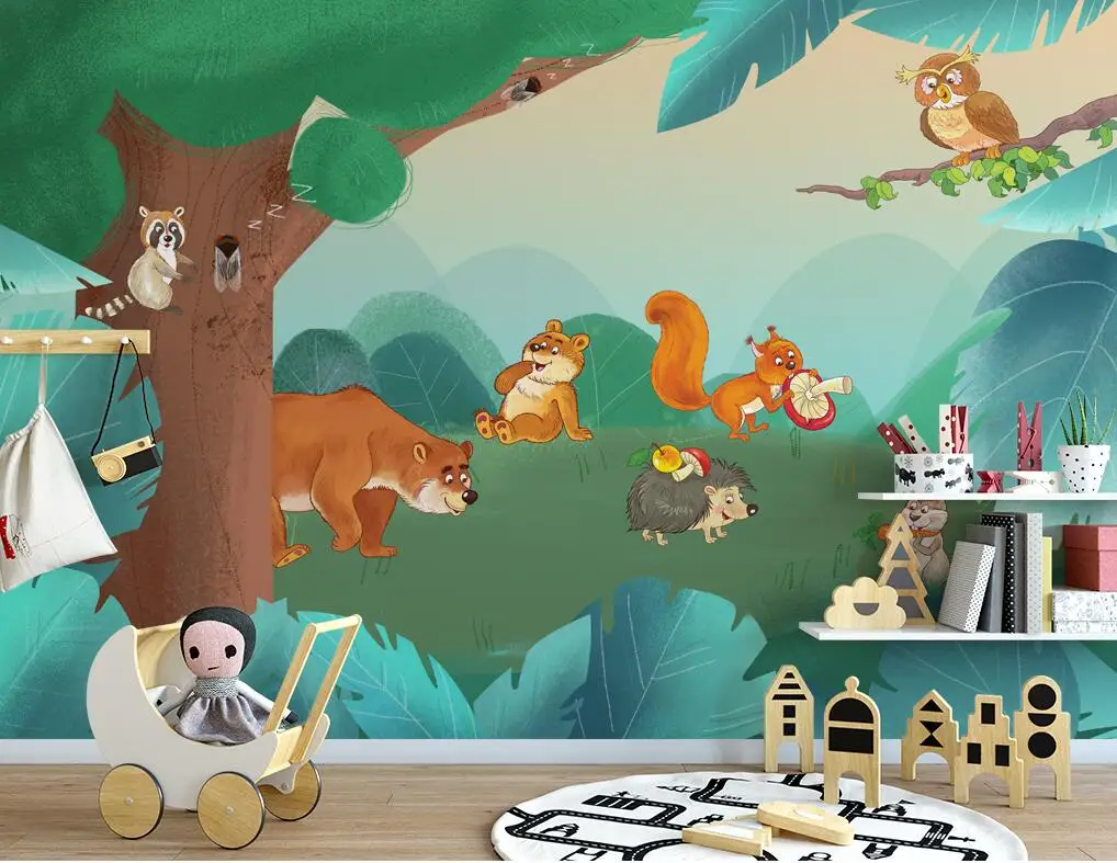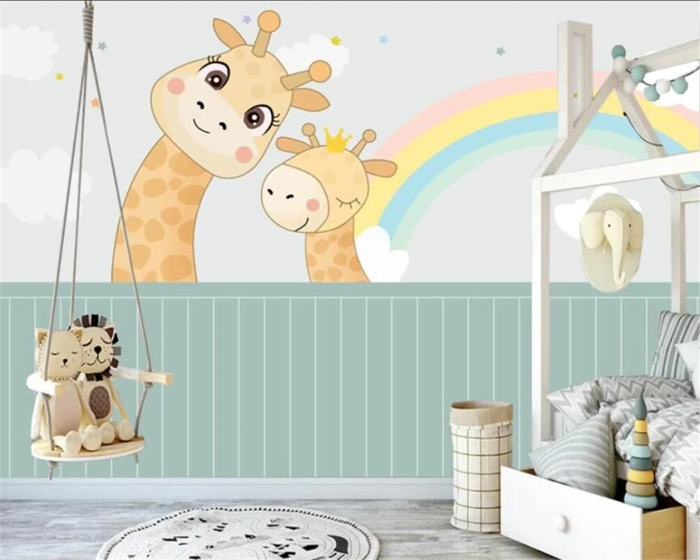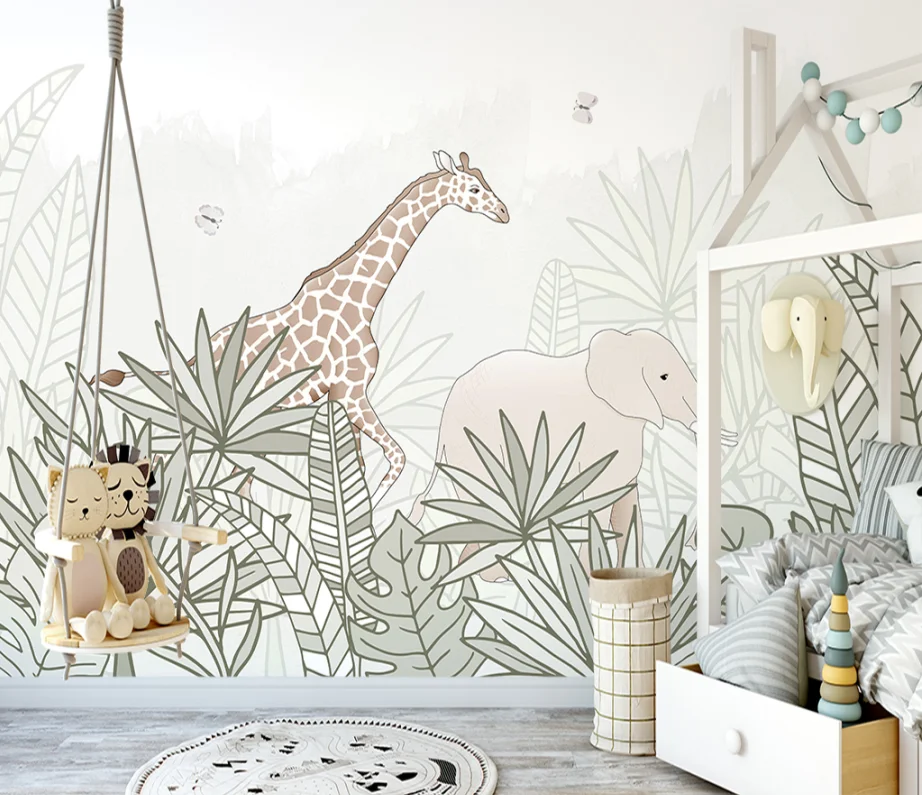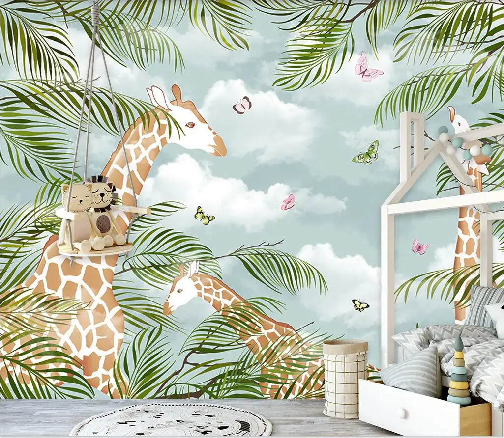 Обои beibehang на заказ, современные Мультяшные животные, тропический жираф, акварель, растение, детская комната, фоновые настенные 3d обои
