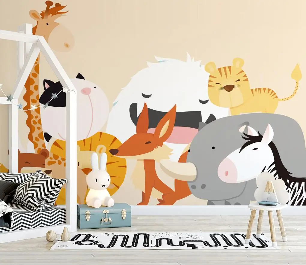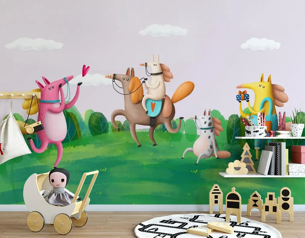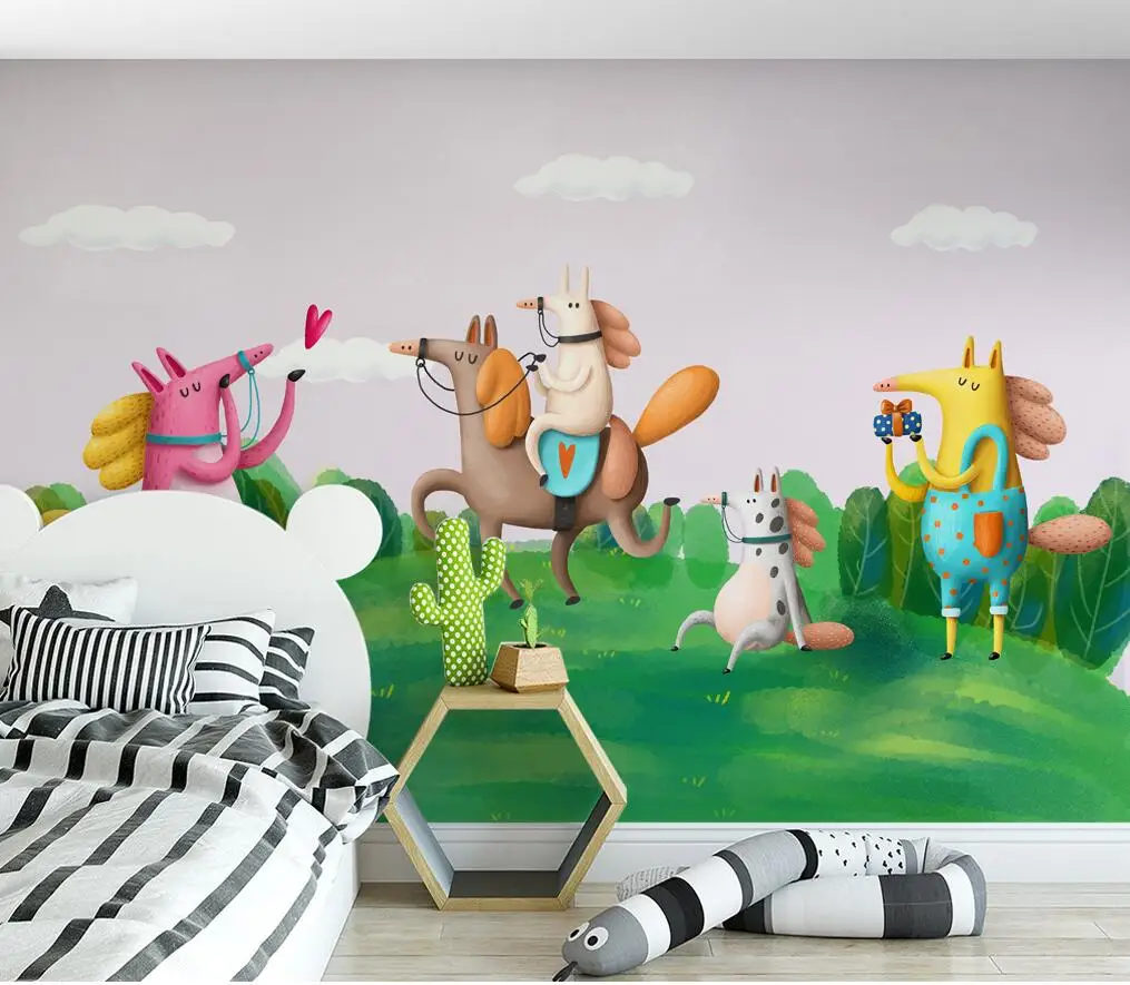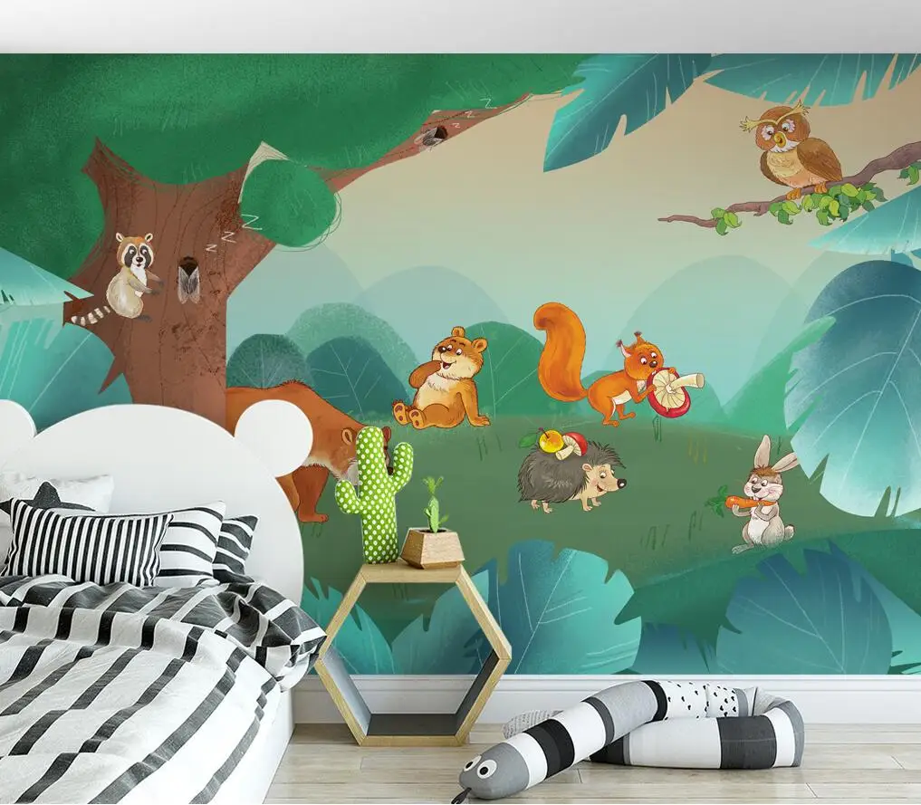 Обои beibehang на заказ, современные Мультяшные животные, тропический жираф, акварель, растение, детская комната, фоновые настенные 3d обои