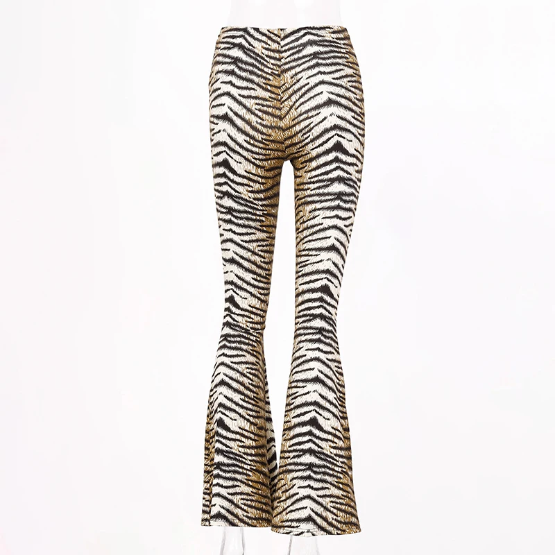 Женские брюки-клеш Dulzura, леопардовые брюки с высокой талией и принтом тигра, повседневная одежда для осени и зимы, 2019