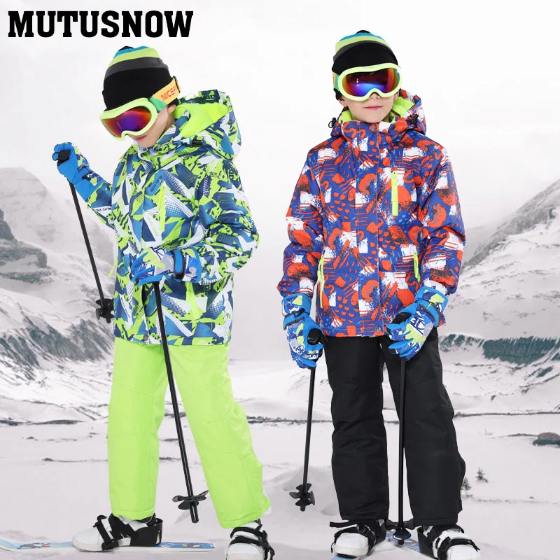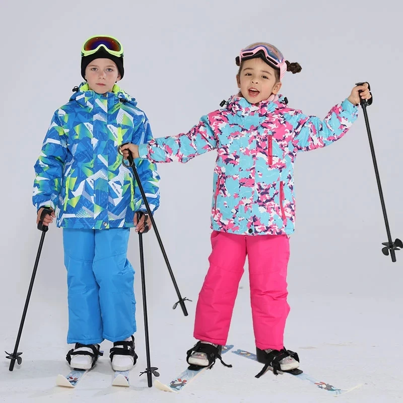 Детский лыжный костюм, куртка и штаны для мальчиков и девочек, для сноуборда, теплая, водонепроницаемая, для зимы-30 градусов, 2020