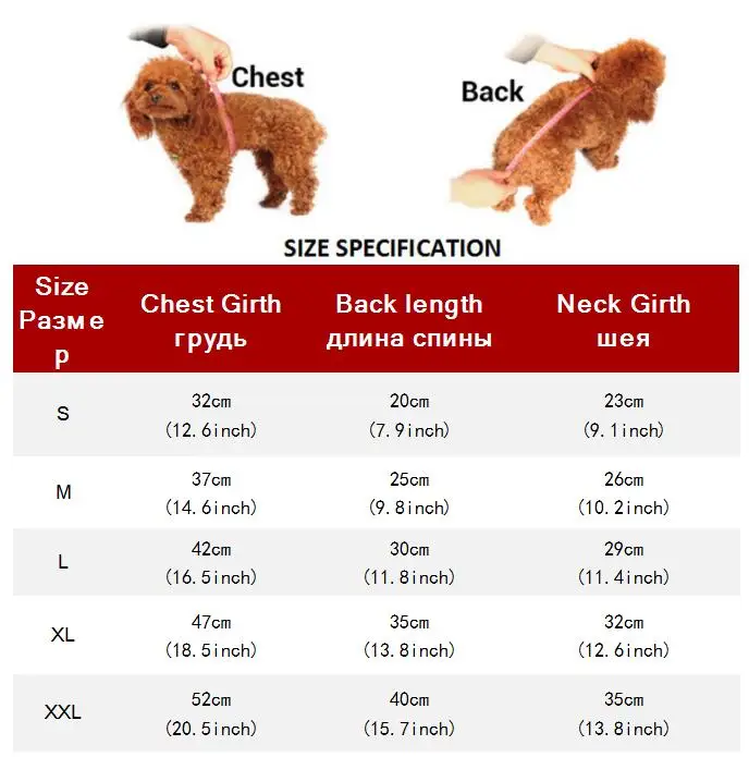 Это очень маленький размер. Я заказал маленький размер, Мой Йоркширский Вес 2,2 кг, и он маленький. Плотно прилегает к телу и короткая длина. Необходимо заказать больший размер.