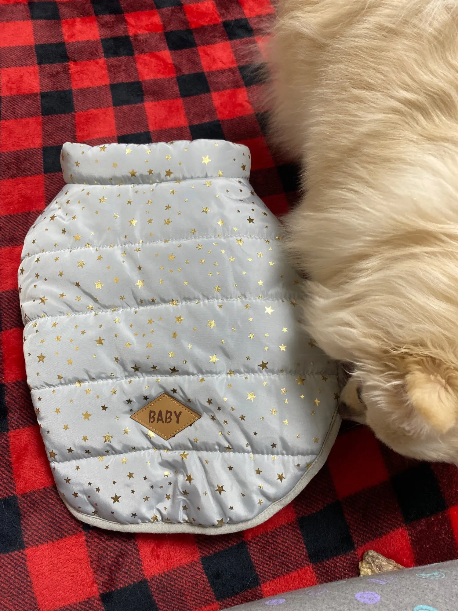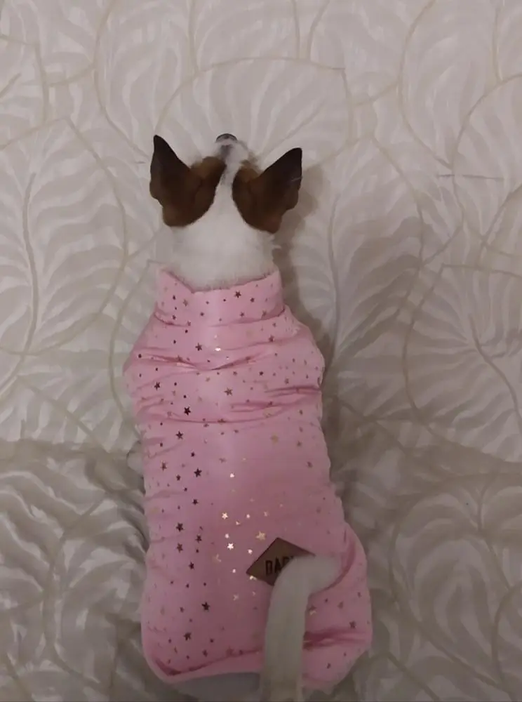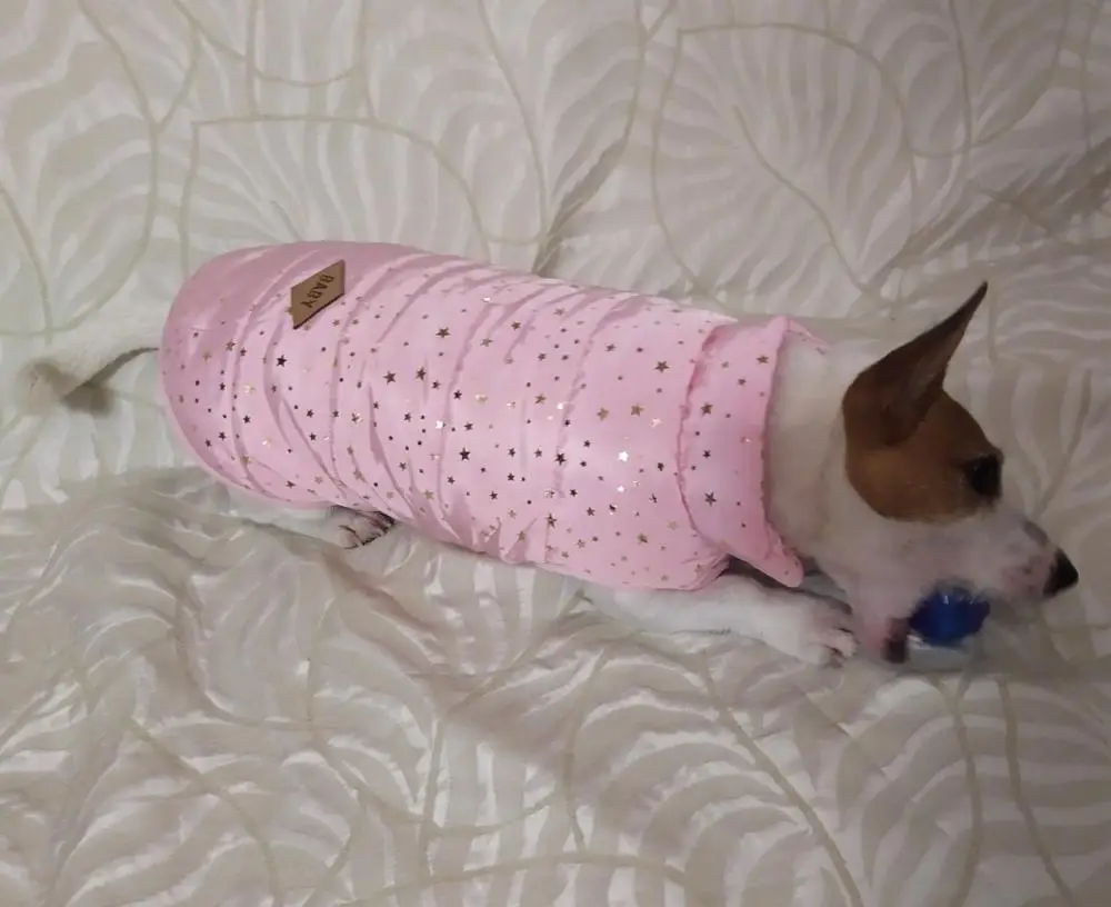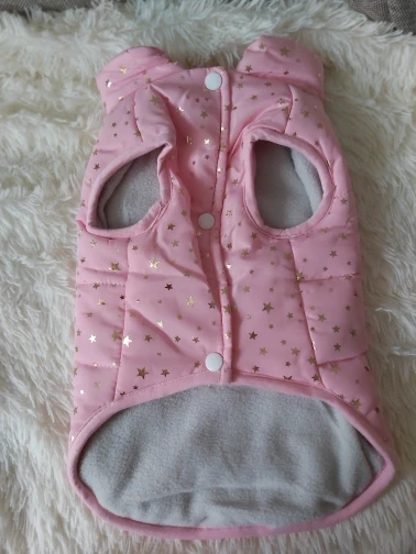 Доставка очень быстрая. Качество ткани очень хорошее и принт со звездой. Очень мягкая внутренняя подкладка. Моя маленькая сука в восторге от него, потому что он тоже теплый. Хорошие покупки