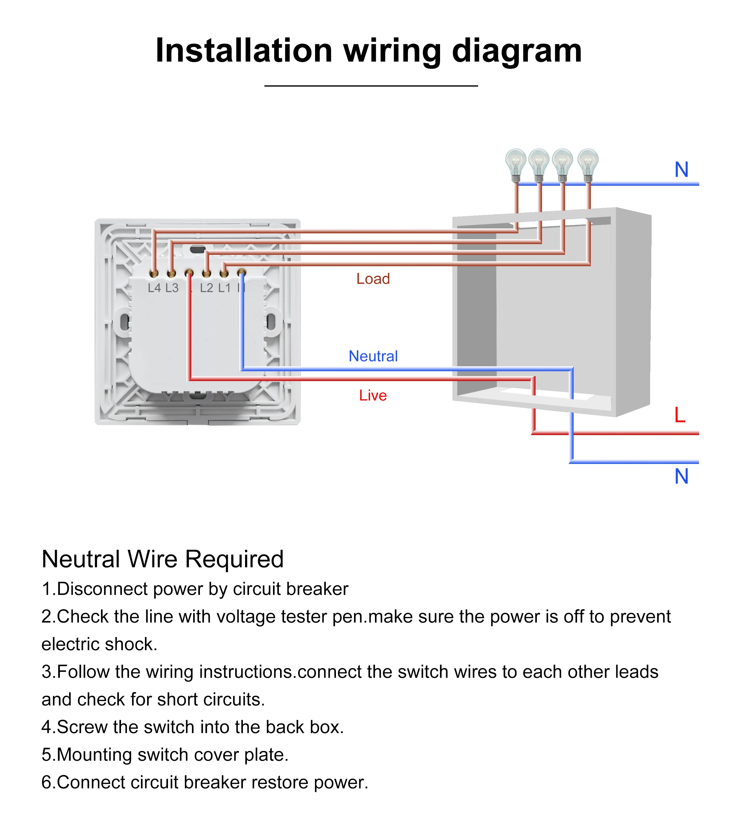 Страна: GH Color: White-F Size: logo on glass Standard: need neutral line Number of Gangs: 4-Gang Доставка: Standard Shipping 22.04.2021