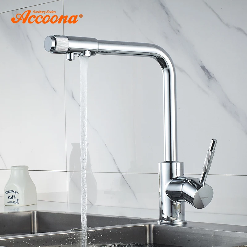 Смеситель Accoona кухонный с фильтром, однорычажный кран из твердой латуни, для питьевой воды, для крепления на раковину