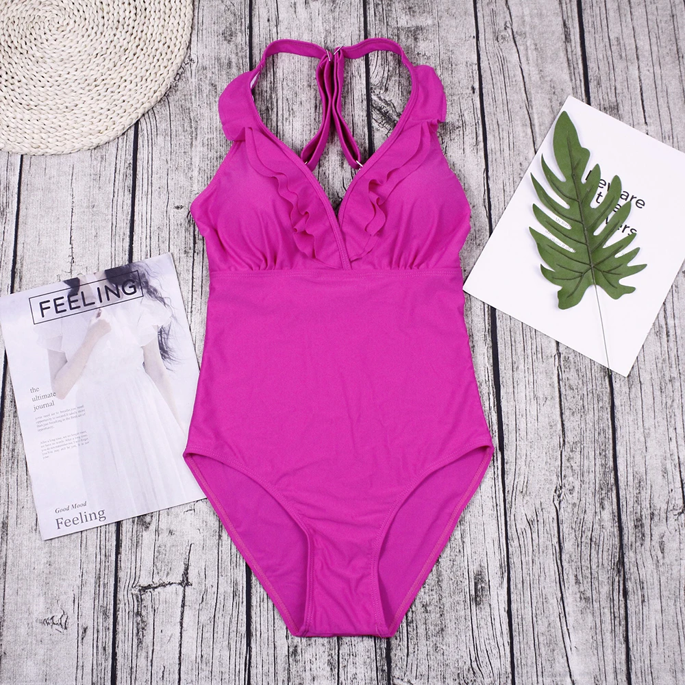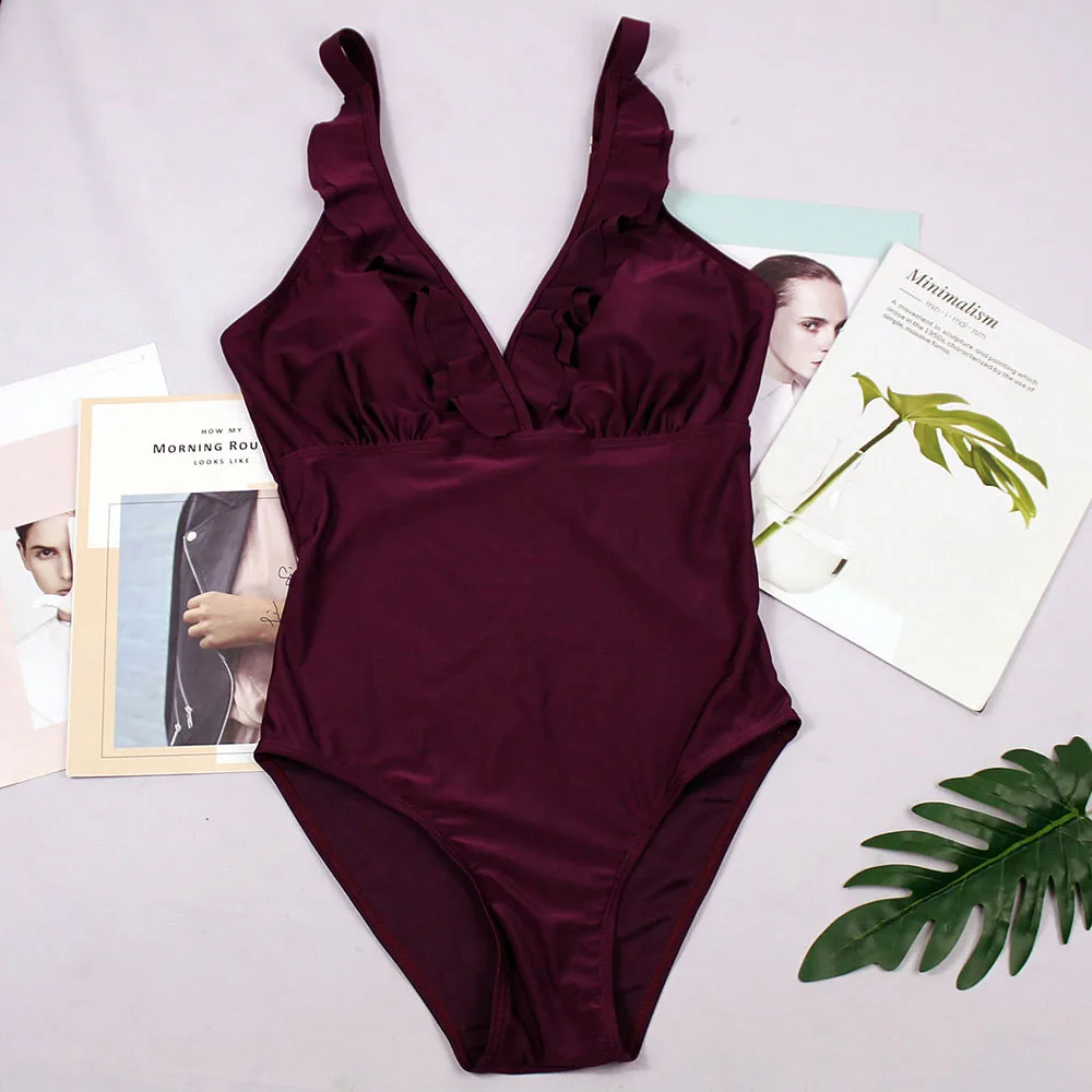 Новинка 2022, сексуальный женский слитный купальник, купальный костюм с пуш-ап и оборками, Женский винтажный Монокини, Пляжное боди