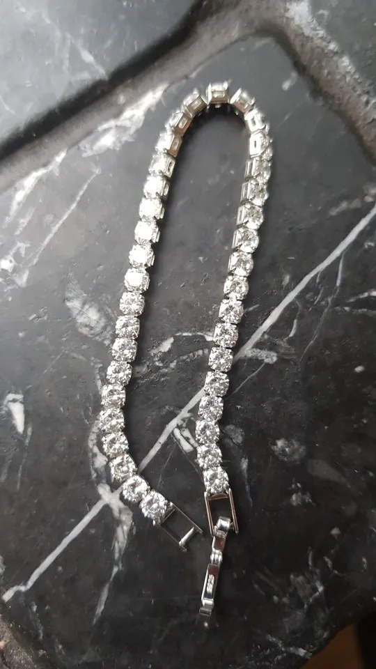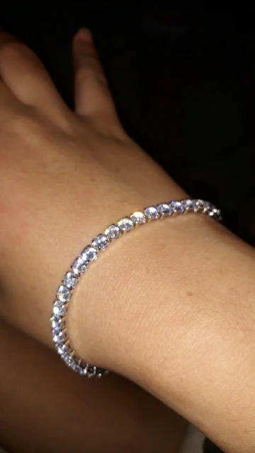 bracelet magnifique... identique à la photo... il est léger et semble fragile... il est très brillant à la lumière artificielle et rend bien au poignet.... le fermoir tient bien... il a un poinçon ... 22 jours pour la livraison en France... pour le prix je recommande...