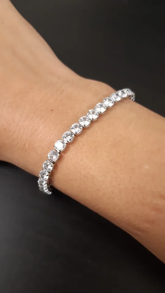 Женский браслет для тенниса, розовое золото, серебро, 345 мм