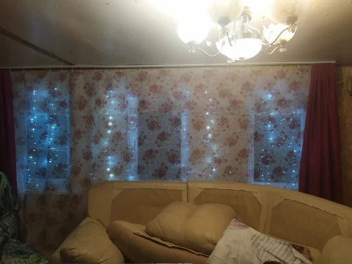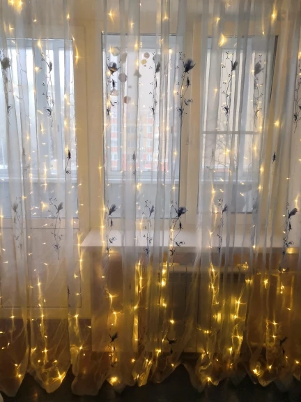 Очень быстрая доставка в Московскую область компанией СДЕК!!! Товар полностью соответствует описанию, размер точный и свет лампочек соответствует заказу. Есть небольшой брак посередине одной шторы - оголённые провода чёрные около 3см, но на работу гирлянды не влияет, поэтому звезду не снимаю. Продавец молодец!!!