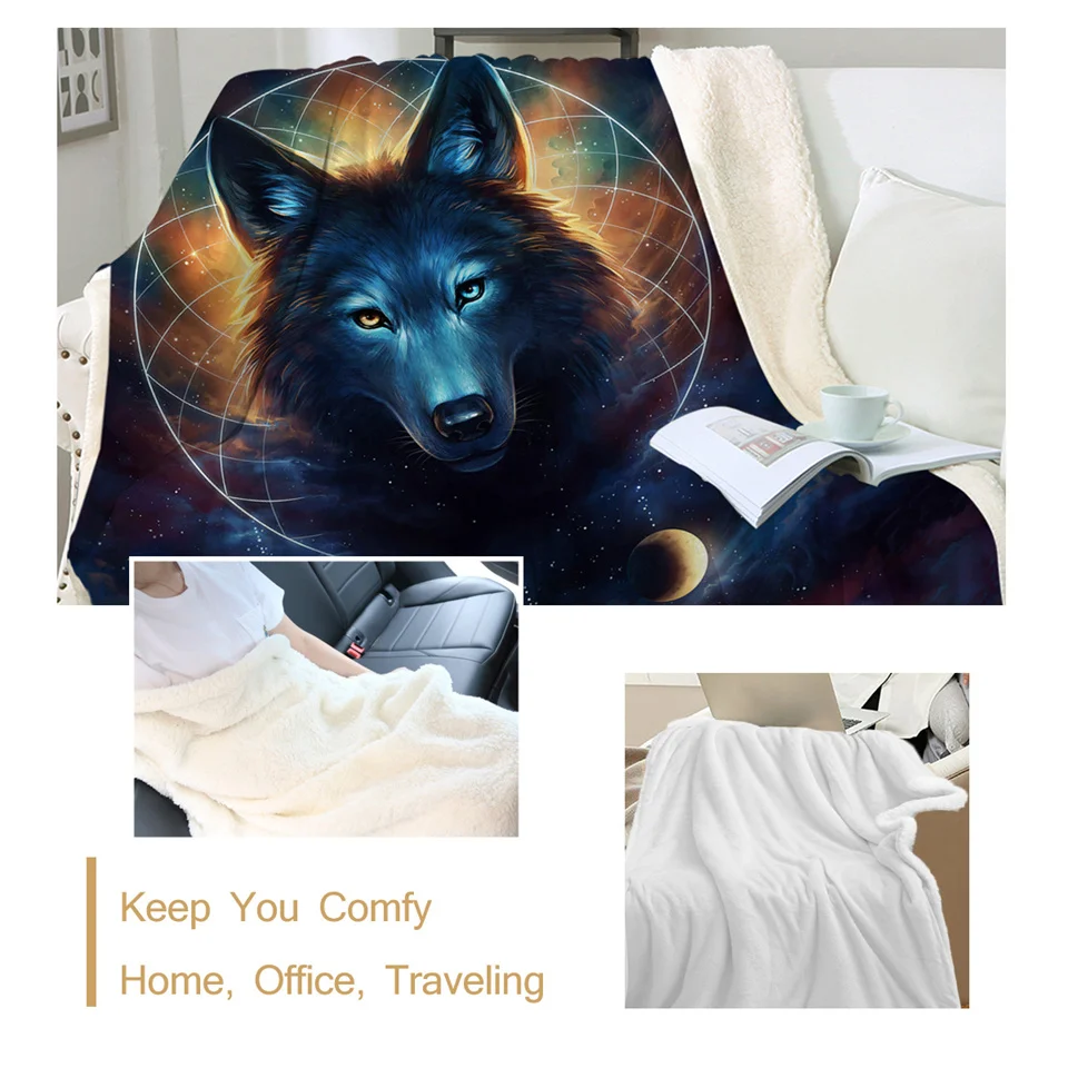 Лунное Дитя от Pixie Cold Art Одеяла для кроватей Wolf Galaxy Plush...