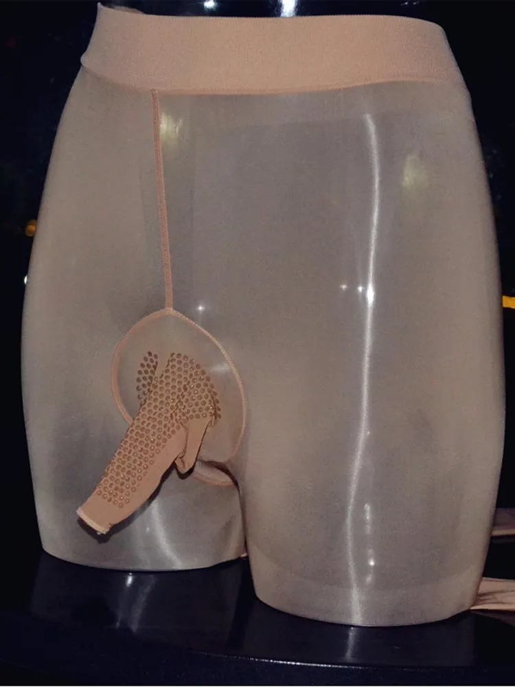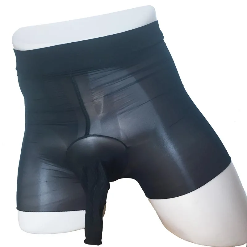 Мужские глянцевые трусы-боксеры с чулками, прозрачные трусы для пениса с дырками, глянцевое нижнее белье, гей-фут