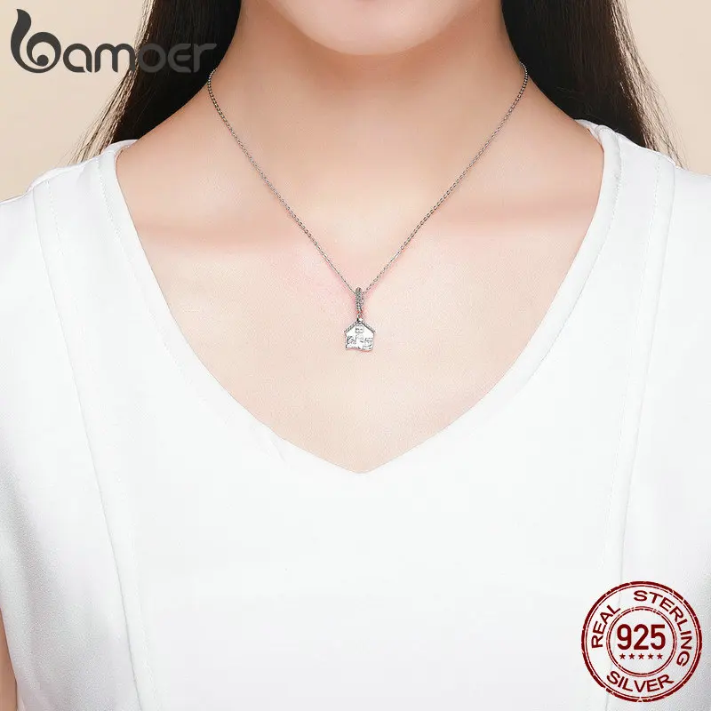BAMOER Аутентичные 100% Серебро 925 пробы, милый домашний кулон в форме домика, подвески, подходящие для женщин, браслеты, сделай сам, ювелирные изделия, подарок SCC913
