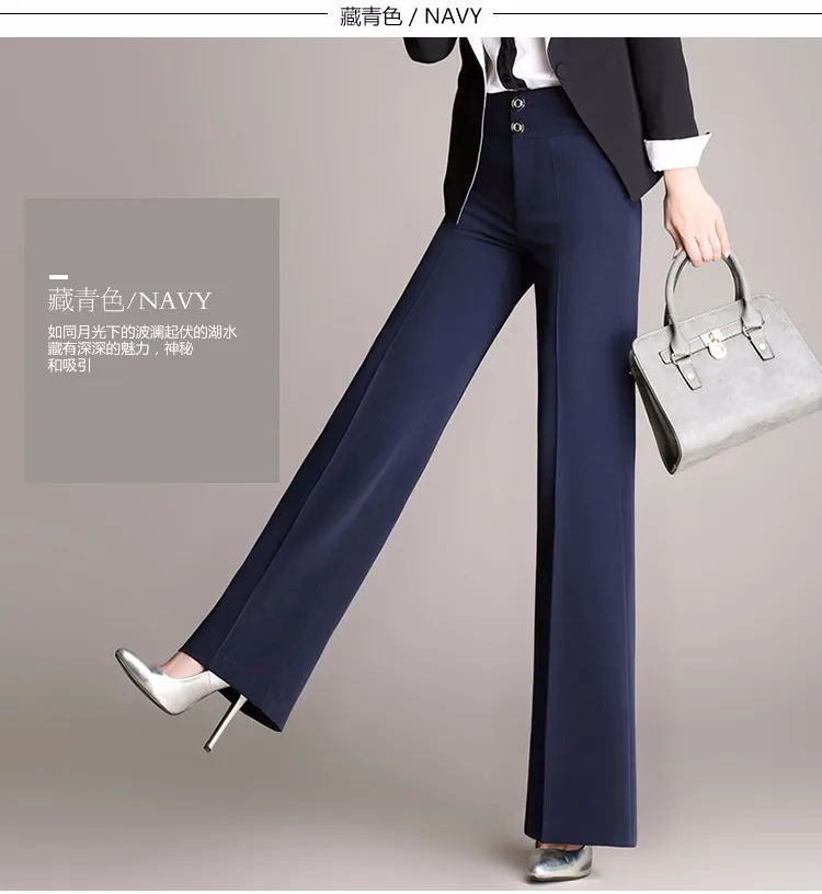 Женские прямые брюки, черные и темно-синие брюки с высокой талией, с широкими штанинами, в винтажном стиле, 2021