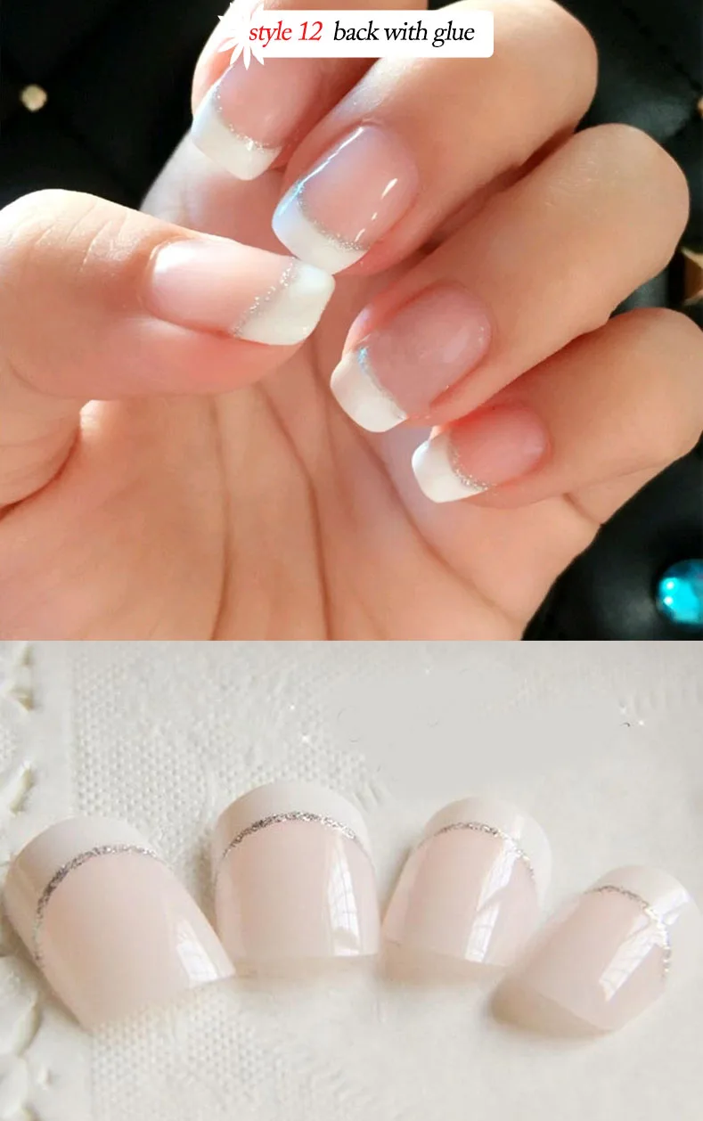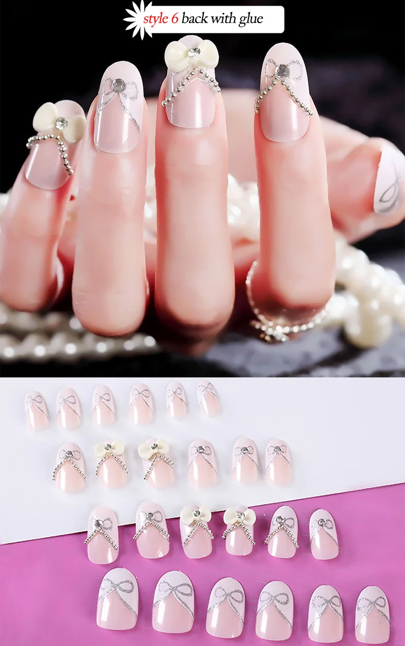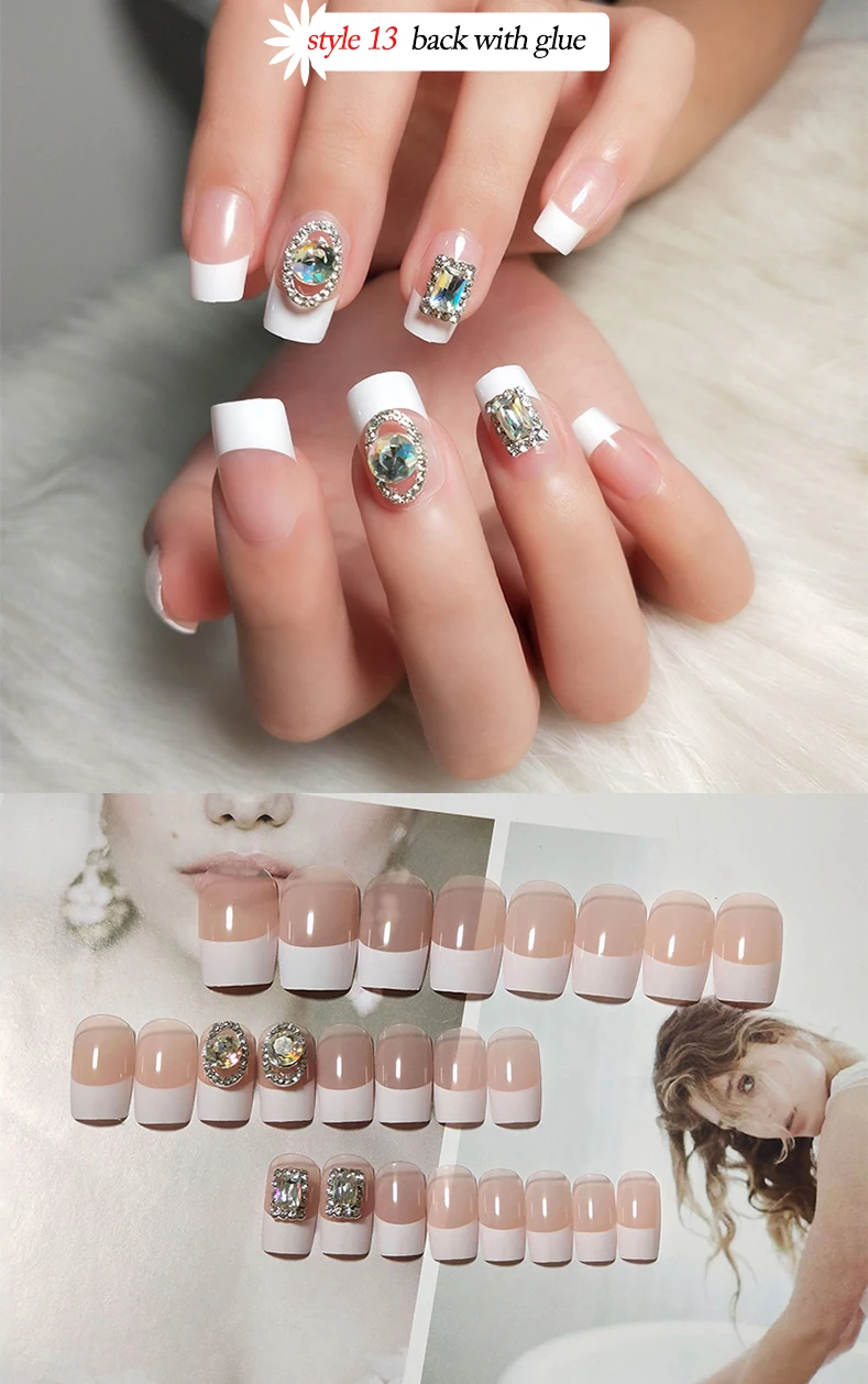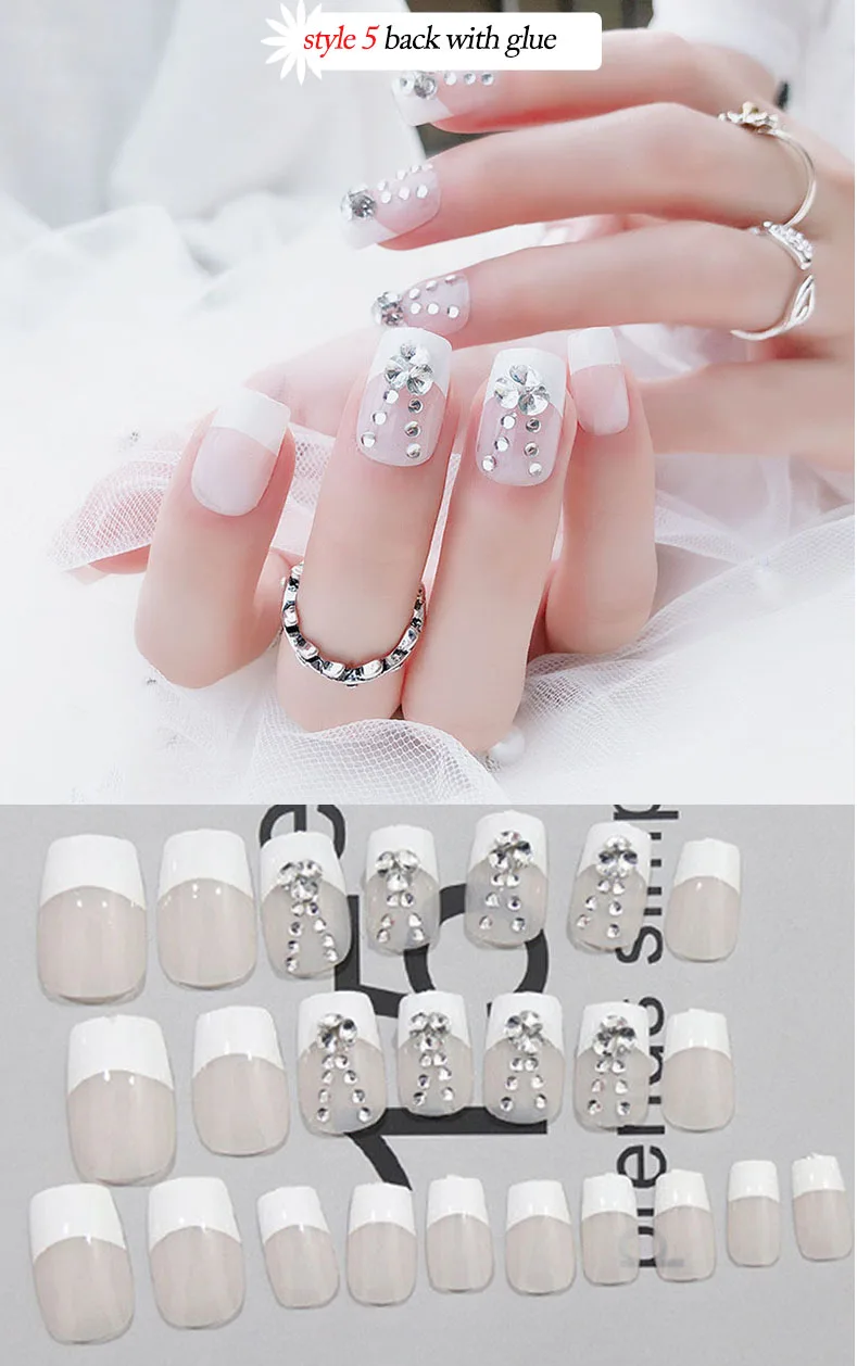 Свадебные накладные ногти Стразы для невесты Простые Модные французские накладные ногти белый бежевый акрил накладные ногти с клеем
