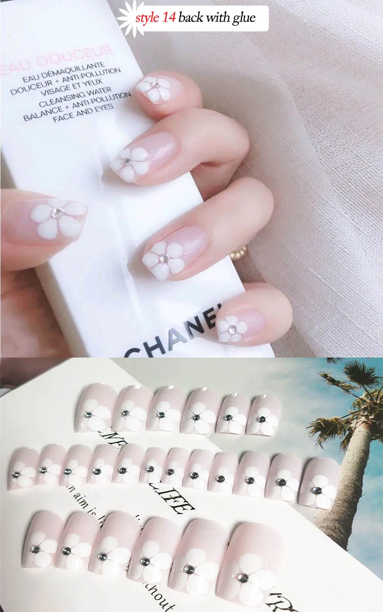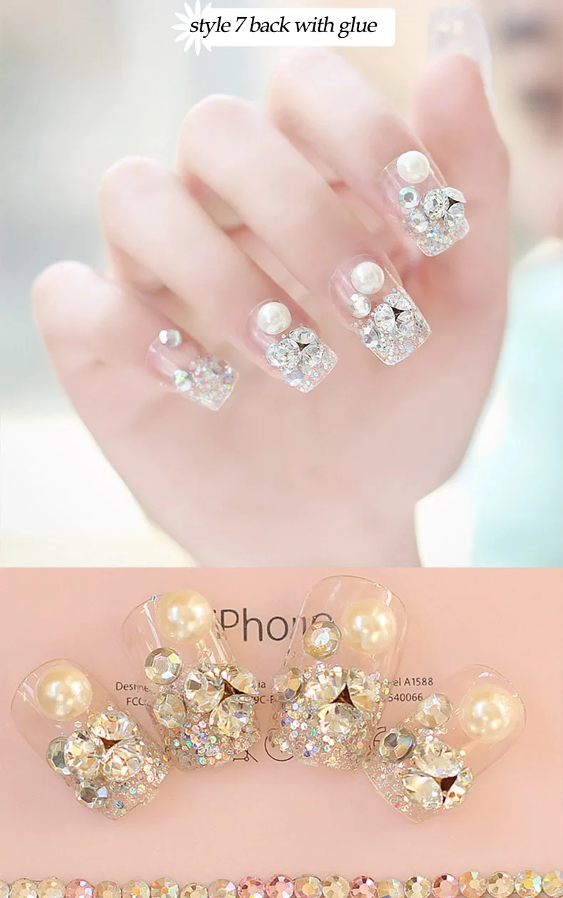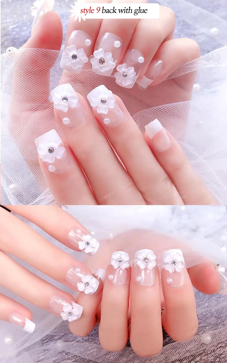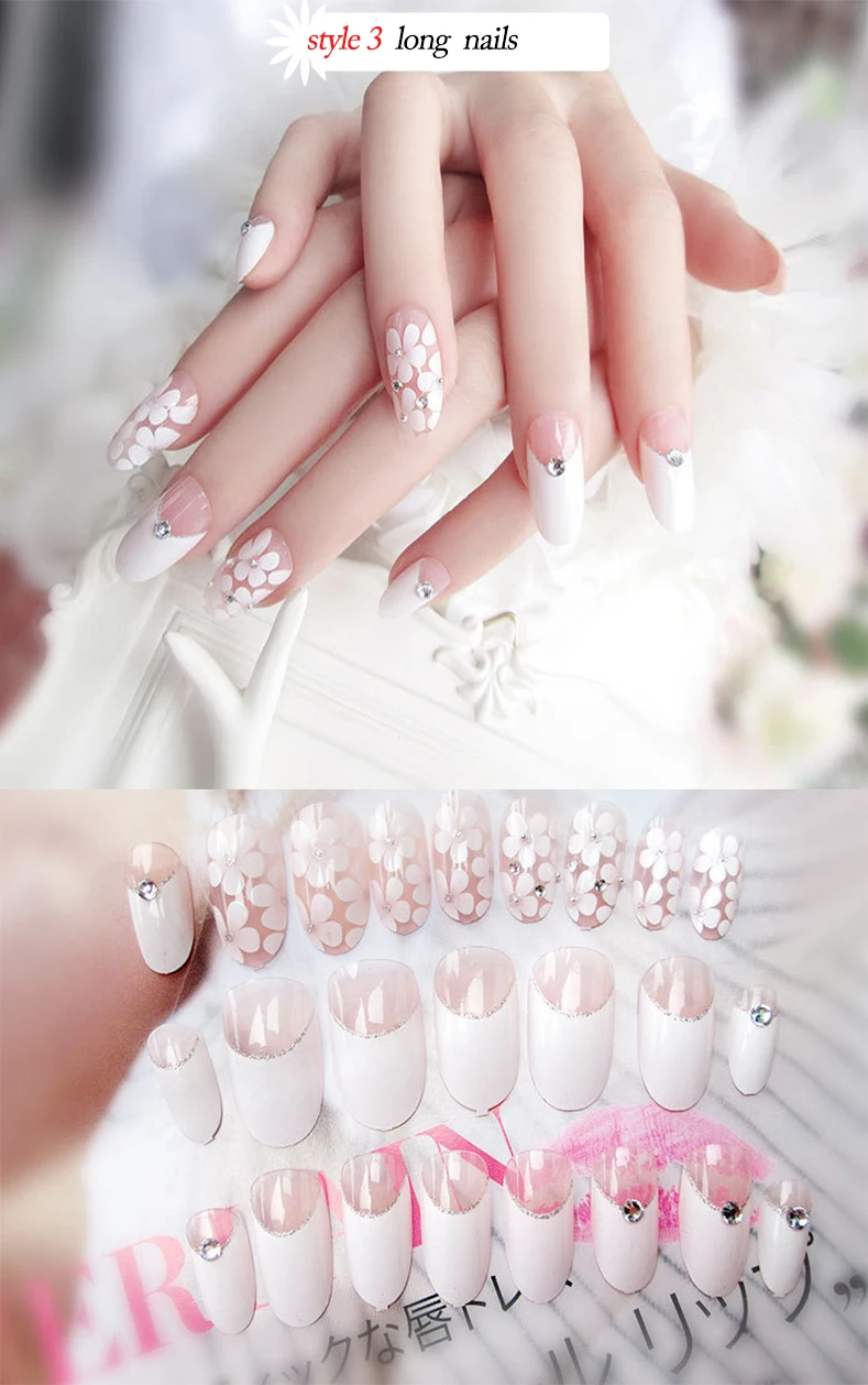 Свадебные накладные ногти Стразы для невесты Простые Модные французские накладные ногти белый бежевый акрил накладные ногти с клеем