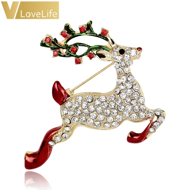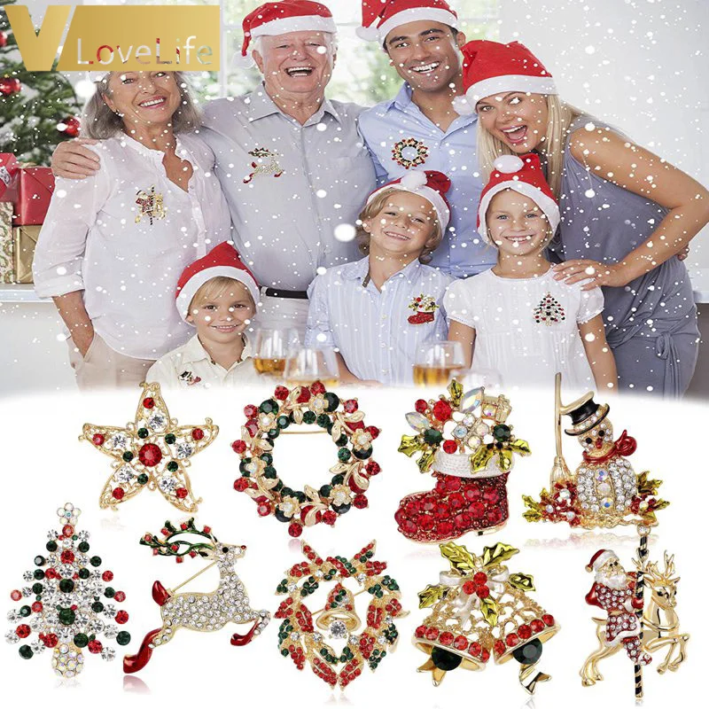 9 стилей разноцветные стразы кристалл Рождественская Брошь булавка Набор для рождественские украшения, Олени Санта снеговик украшения подарки
