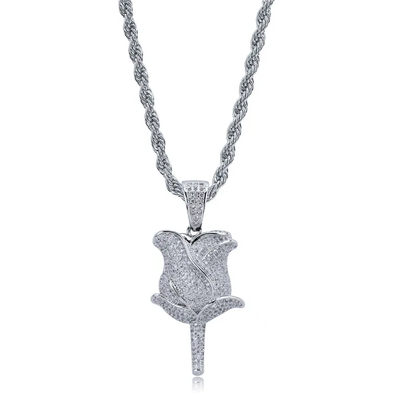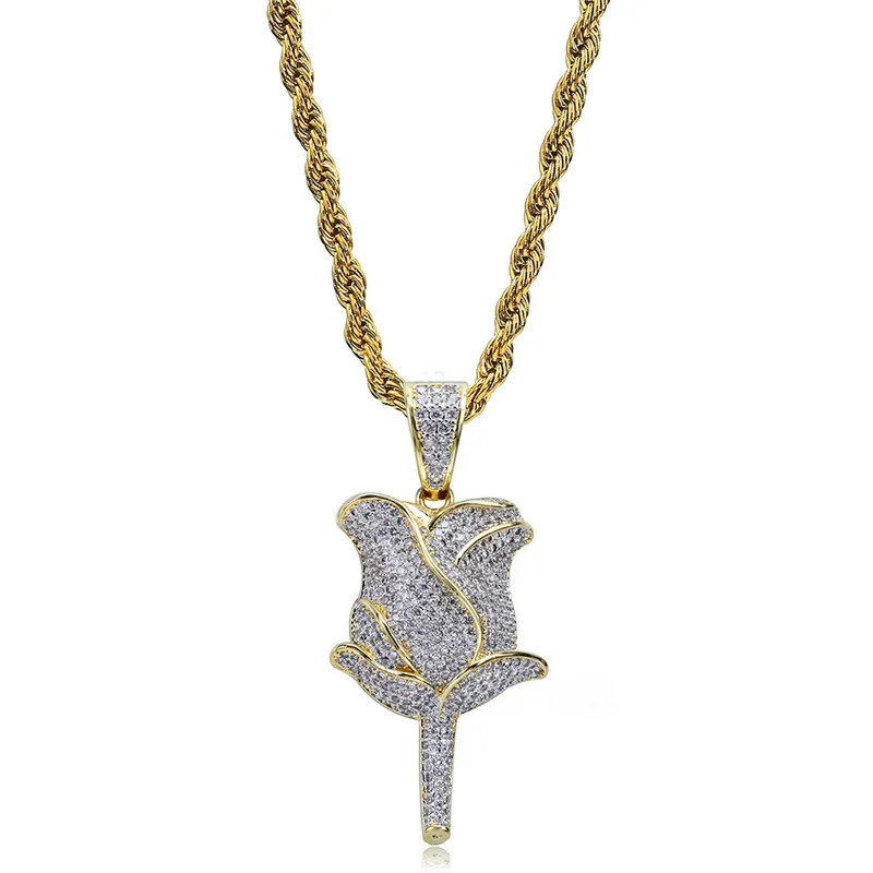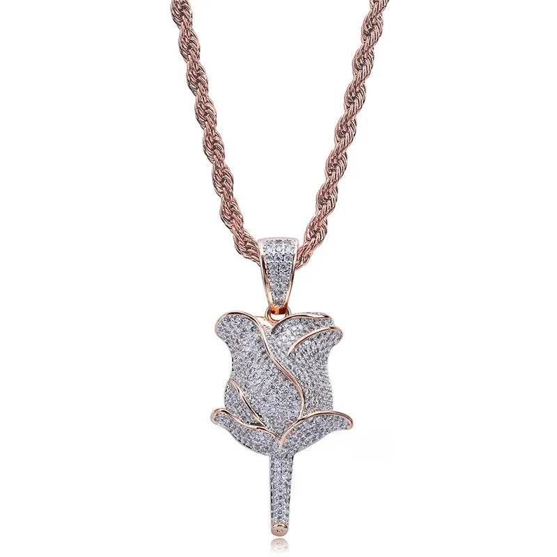 Счастливый сын, Очаровательное ожерелье с подвеской в виде цветка розы для женщин и мужчин, модные подвески и ожерелья со льдом CZ, украшенные драгоценными камнями