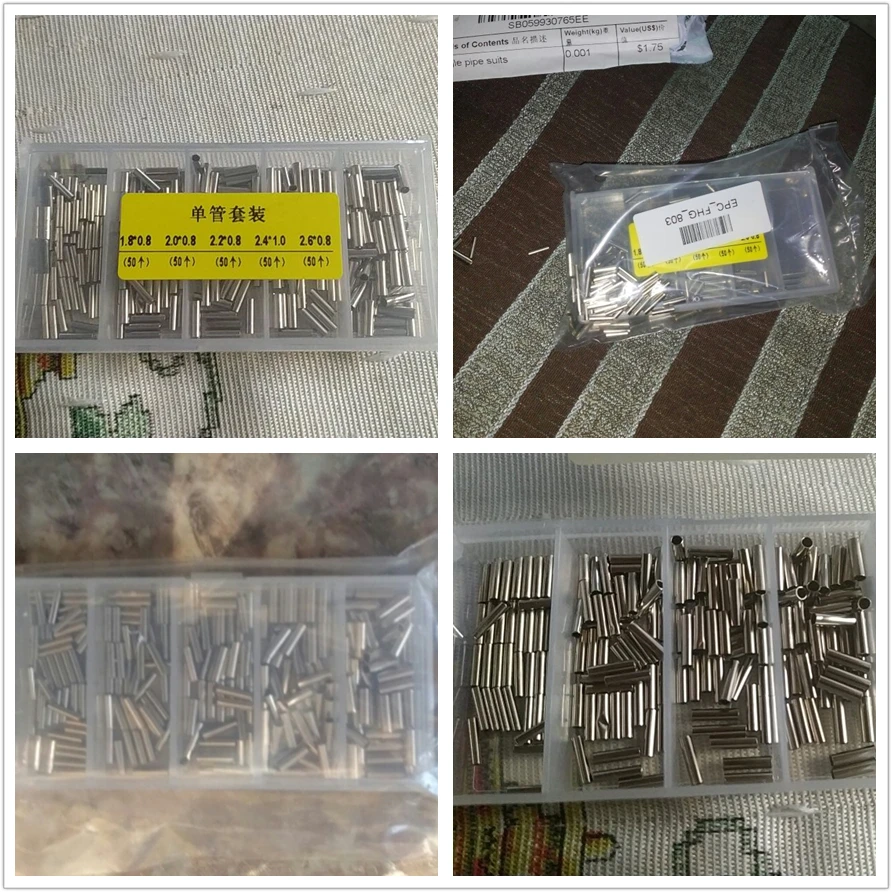 Обжимные рукава для лески, медные трубки, 5 размеров, 250 шт.лот, смешанные медные трубки с коробкой