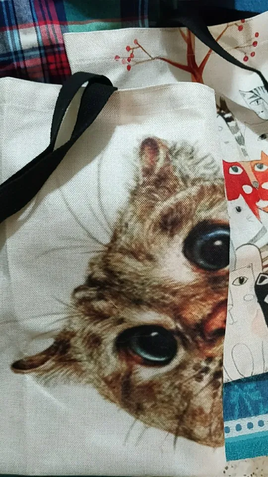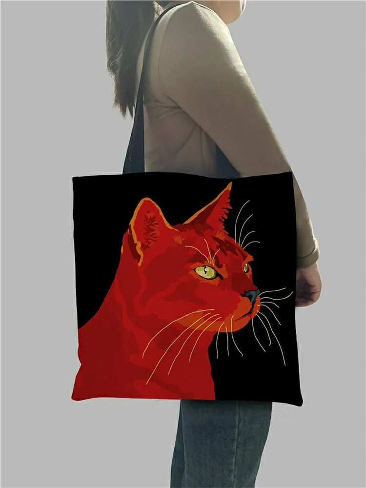 Женская сумка-тоут с милым рисунком кошки из мультфильма, Сумка с принтом из эко-льна, модная практичная сумка через плечо для путешествий
