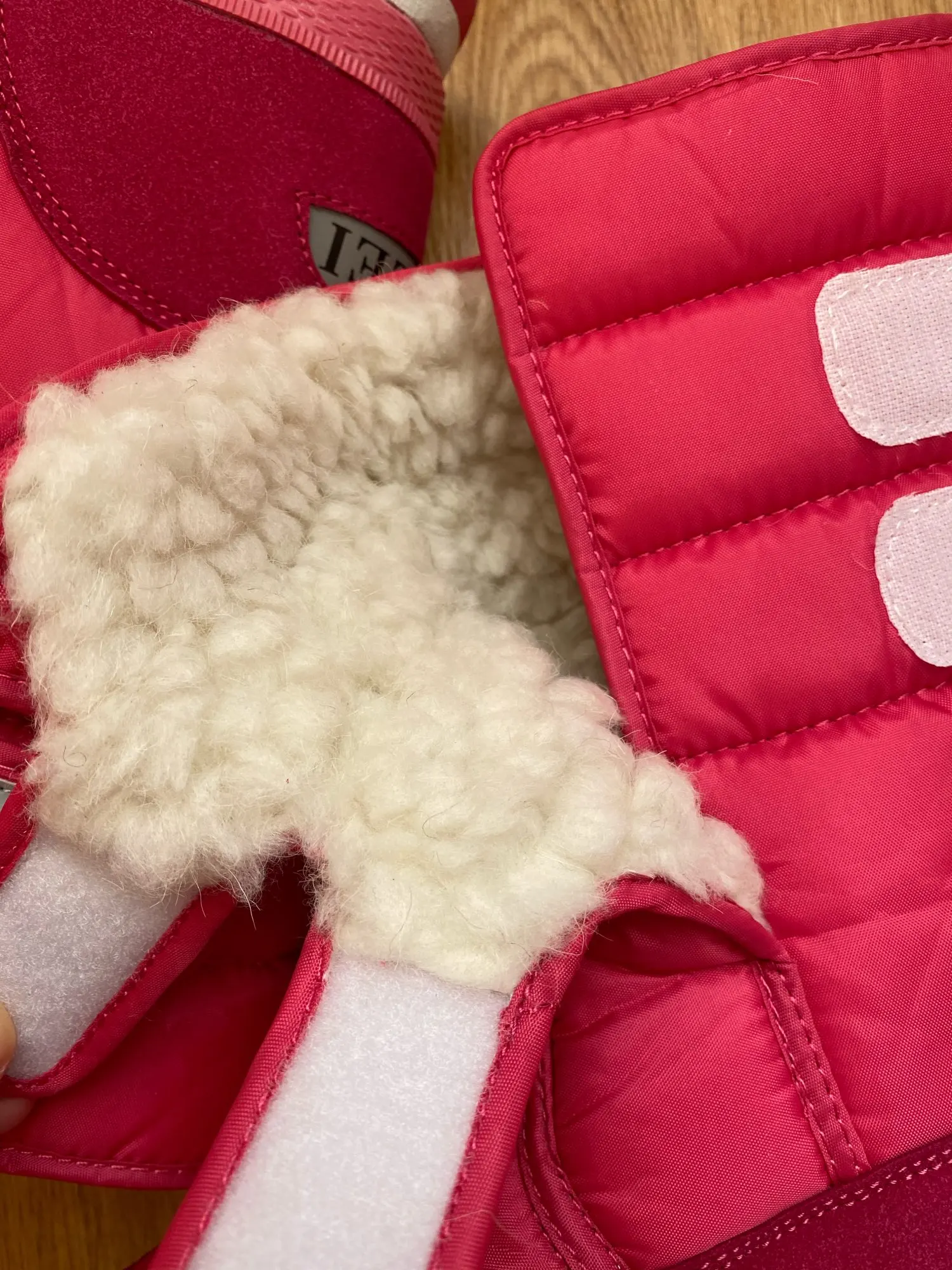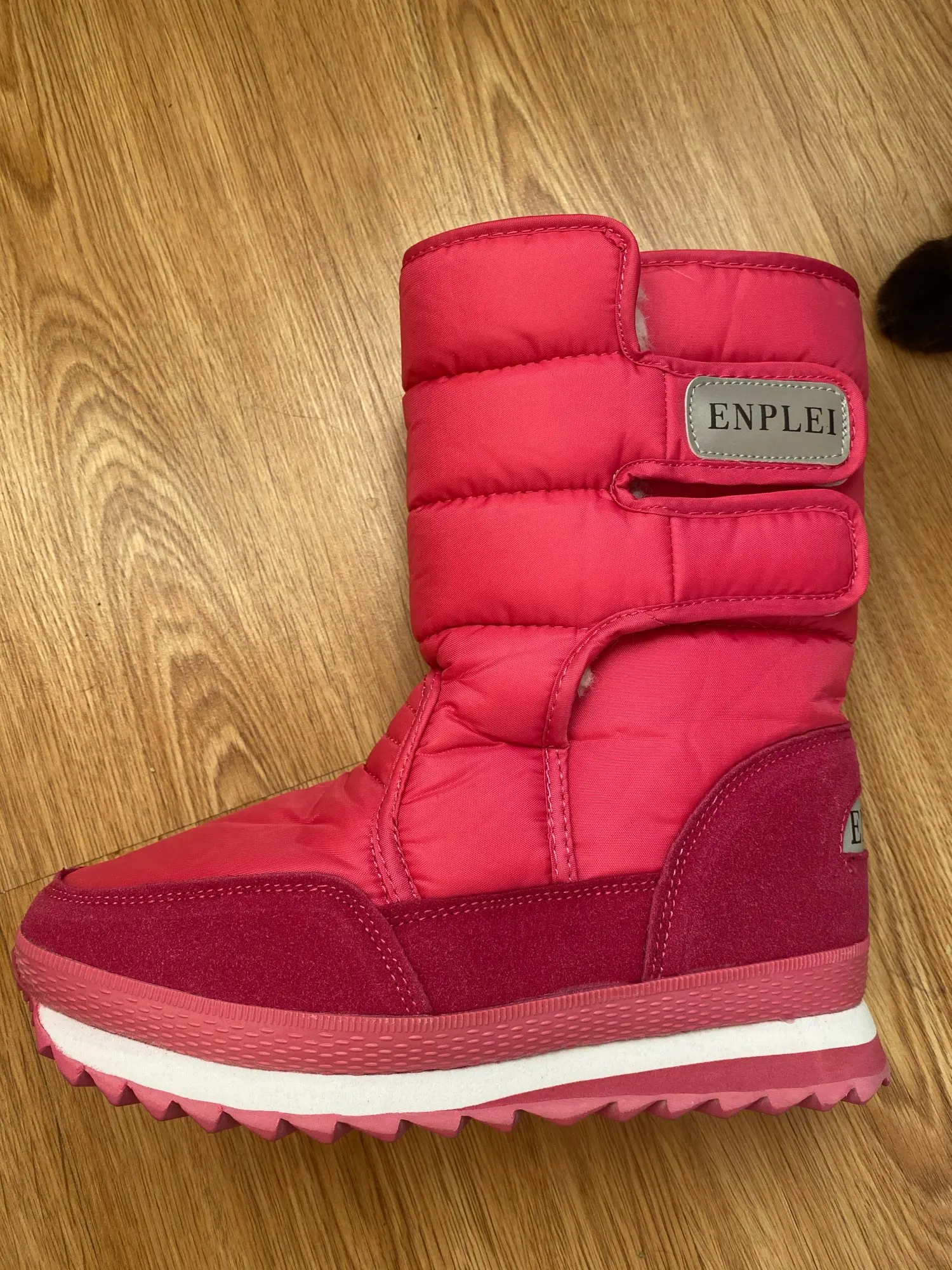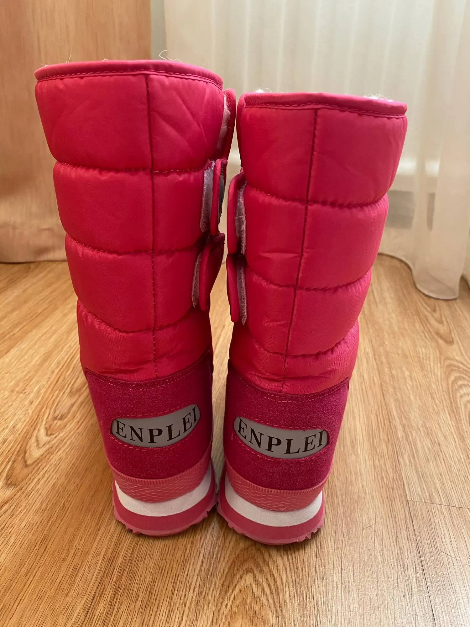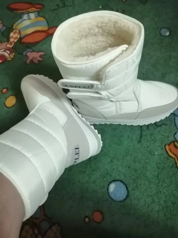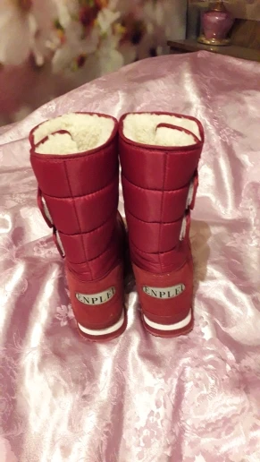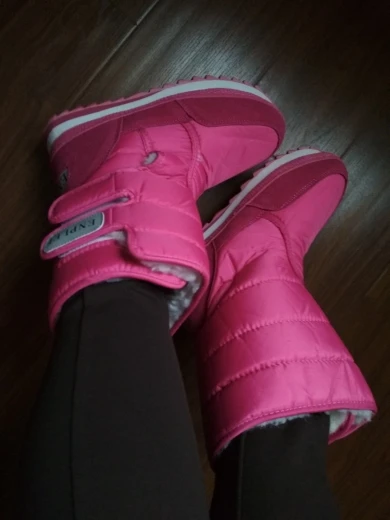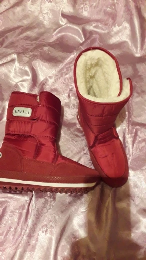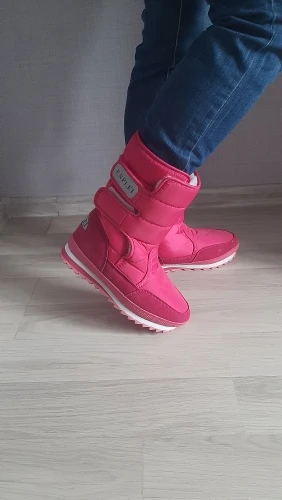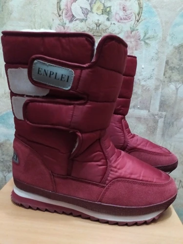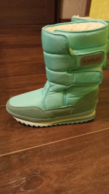 Сапожки хорошие, тёплые. При минус 5 провела на улице в них около часа. На босую ногу не замёрзла. Мех хороший, густой. Липучка крепкая, надеюсь, прослужит долго. Цвет красивый. Снимаю звезду за размер. У меня 36 (22,5-23 см)размер ноги, выбирала по таблице. Брала с небольшим запасом 0,5 см. Пришли сапоги впритык. Надеюсь мех со временем примнётся и станет посвободнее.