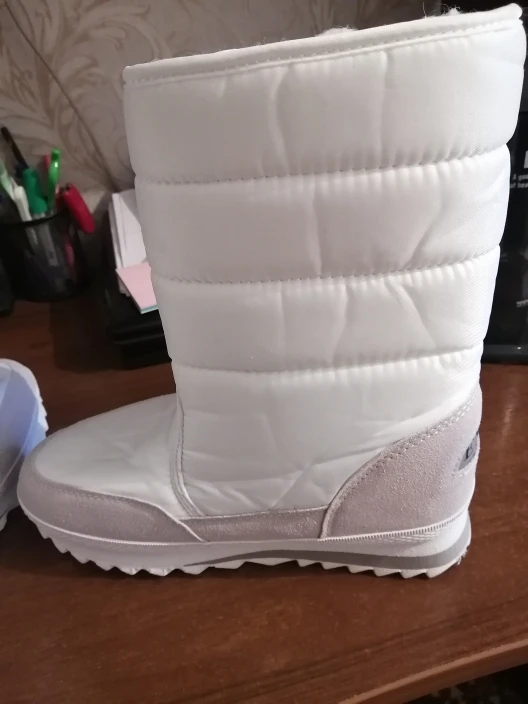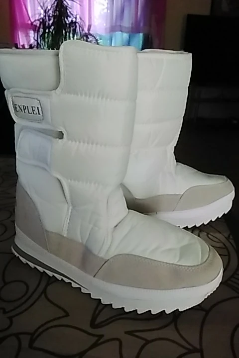 Это самый лучший продавец на Али за все мои 6 лет на Али,супер,сепер,супер!!!Саподки шикарнейшие,красивые,белые чистые,без запаха,упоковка огонь.Сначала плотный пакет типа из как бы цилофана,но очень плотный,разрезала с трудом.Потом в пупырчатый пакет,очень просторный,всё хорошо там лежало,не помята,не сжато,всё очень хорошо,чётко.Мой размер 24,5 см,по русскому 39 размер.Я почитала отзывы и решила заказать на 2 размера больше,т.е. 41 размер.И попала в точку!Это прям таки замечательно,у меня на тонкий носок чуть впереди носок прямо маленько запас,на тёплый носок будет замечательно.Очень довольна сапожками,как будут на улице,потом напишу,пока не выходила,толька с почты,зашла в квартиру и сразу распоковала и надо отписаться продавцу.Продавец очень общительный,всё время на связи,вежливый.Товар отправил очень быстро и пришло за 13 дней.Очень рекомендую,товар весь хороший,пришёл без брака и правый есть и левый есть,одним словом пара.
