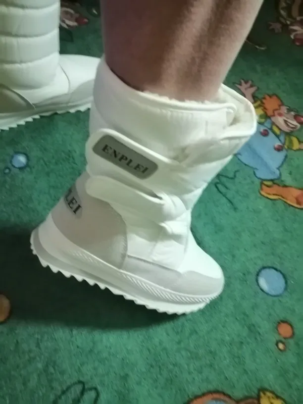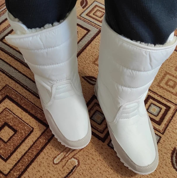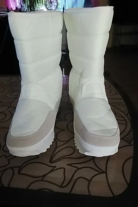 На фото примерно 35 размер, поэтому аккуратненько выглядят. Я брала на зиму, дача, машина, снег, но в метро в таких не поедешь. А так теплые, подошва не скользит, ноге удобно под шерстяной носок на свой 38.5 брала 41 размер. Китайцы ржут нашим размерам женским))) Норм. Подъем высокий в сапогах, кому важно. В целом хорошо. То, что и ожидалось. Спасибо отзывам россиян! Спасибо продавцу!