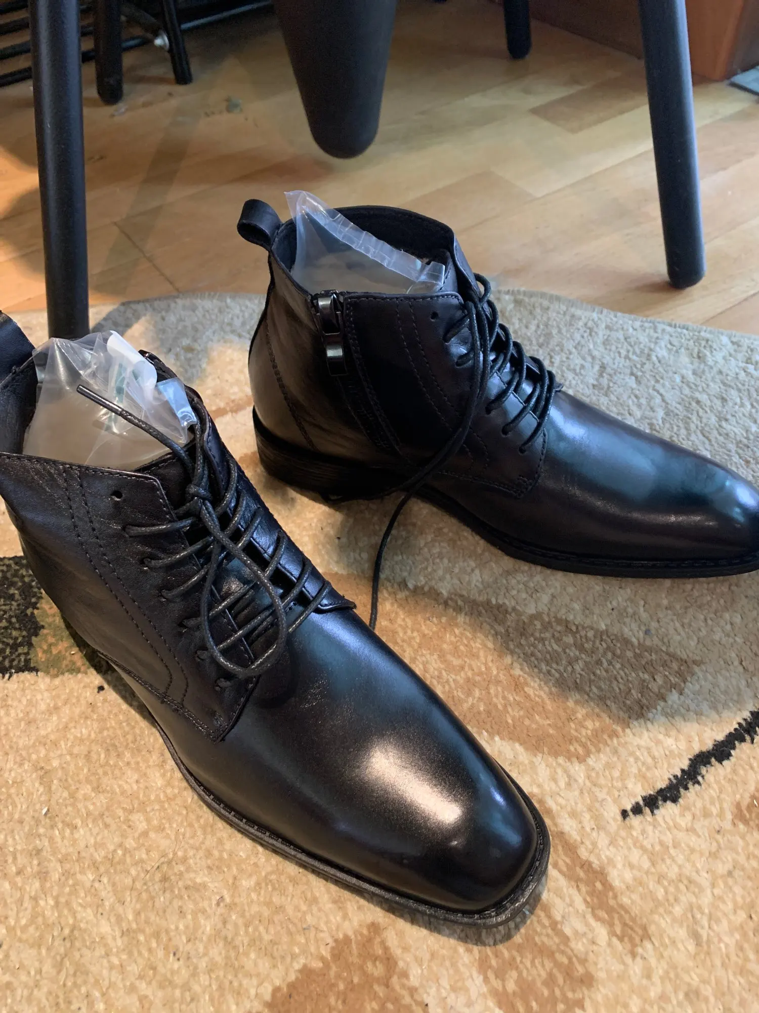 fast shipping and as described. communication with seller is extraordinary. nice boots made from real leather. I was very surprised how comfortable they are. using orthopedic insole I was able to fit them in. thank you seller.
