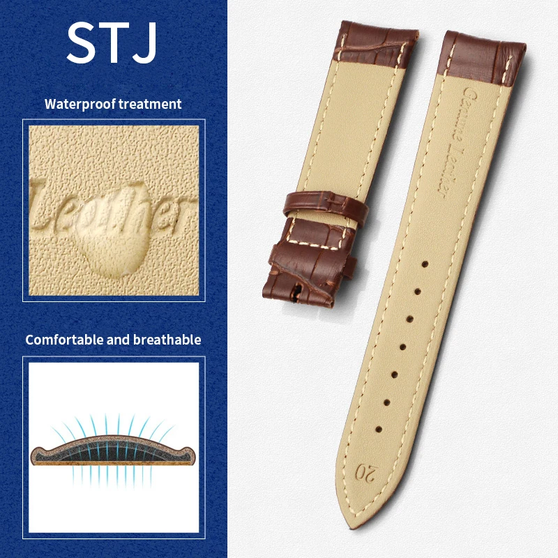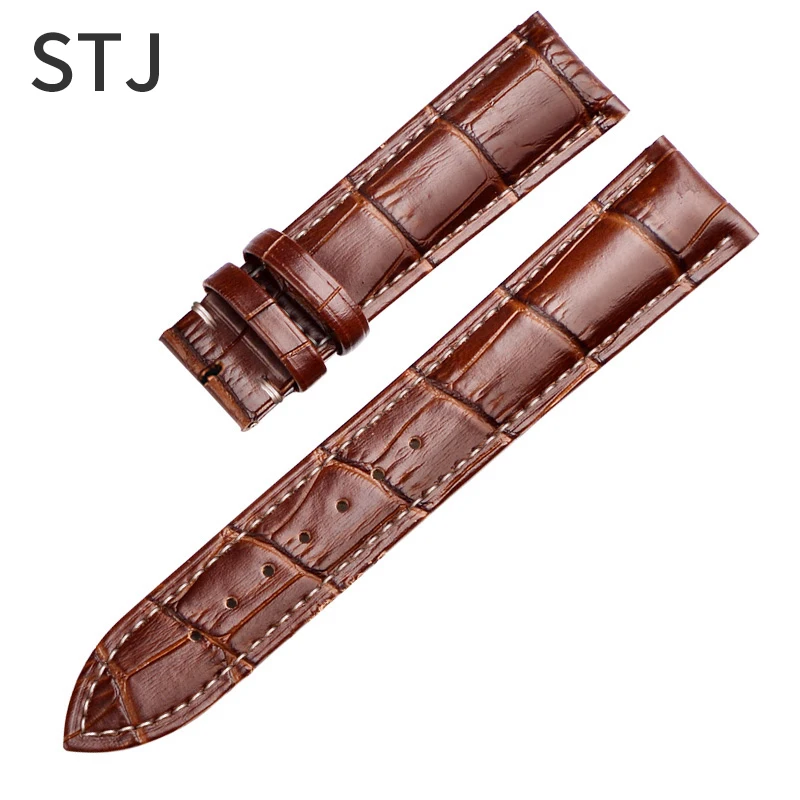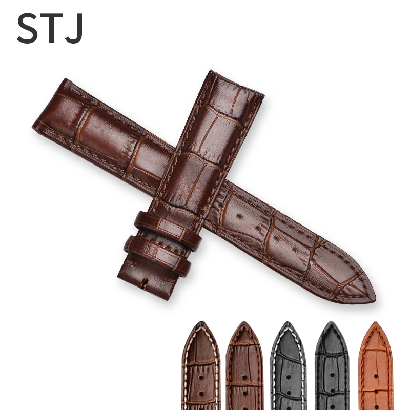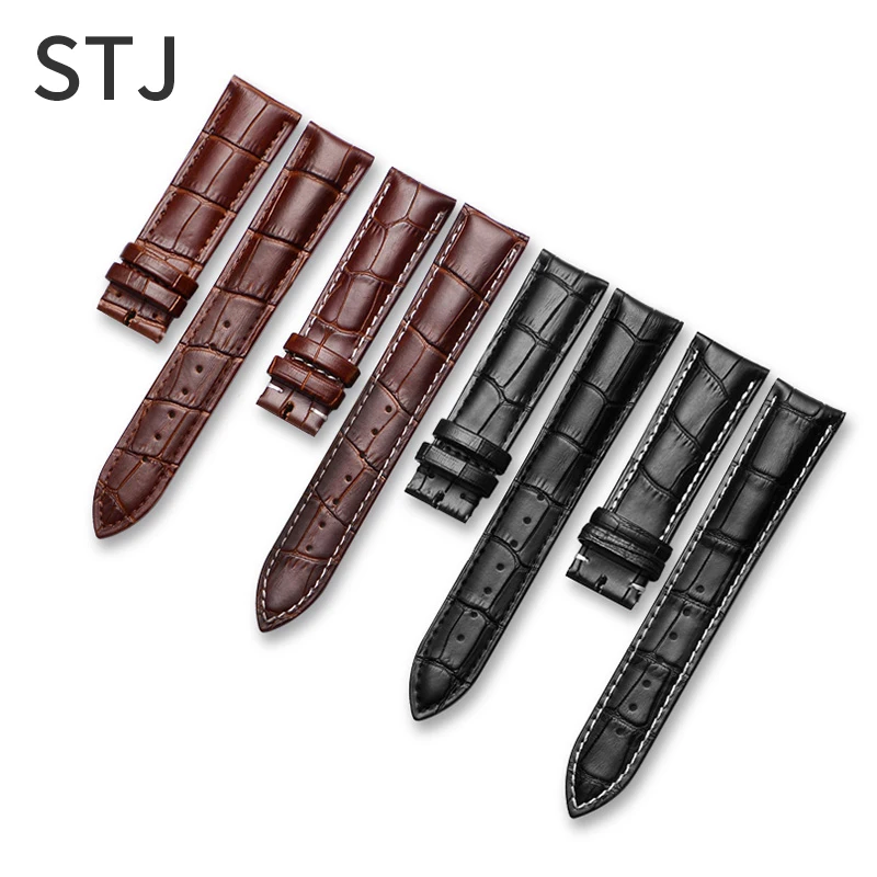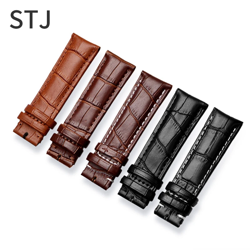 Ремешок для часов STJ, из натуральной кожи, черный, размер 18 мм, 19 мм, 20 мм, 21 мм, 22 мм, 24 мм