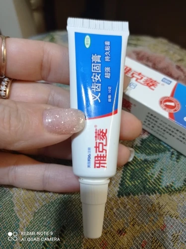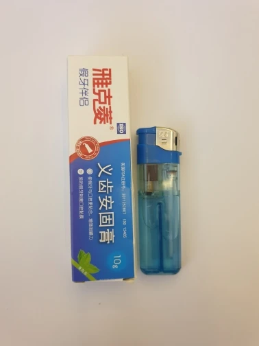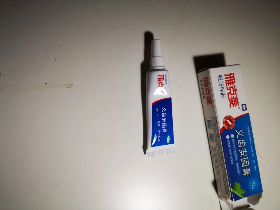 Клей для зубных протезов не достаточно прочный. В очень малом количестве.
