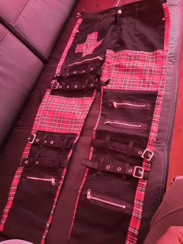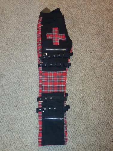 Мужские зауженные джинсы Sokotoo с нашитыми крестами в шотландскую клетку модные прямые брюки с ремнями