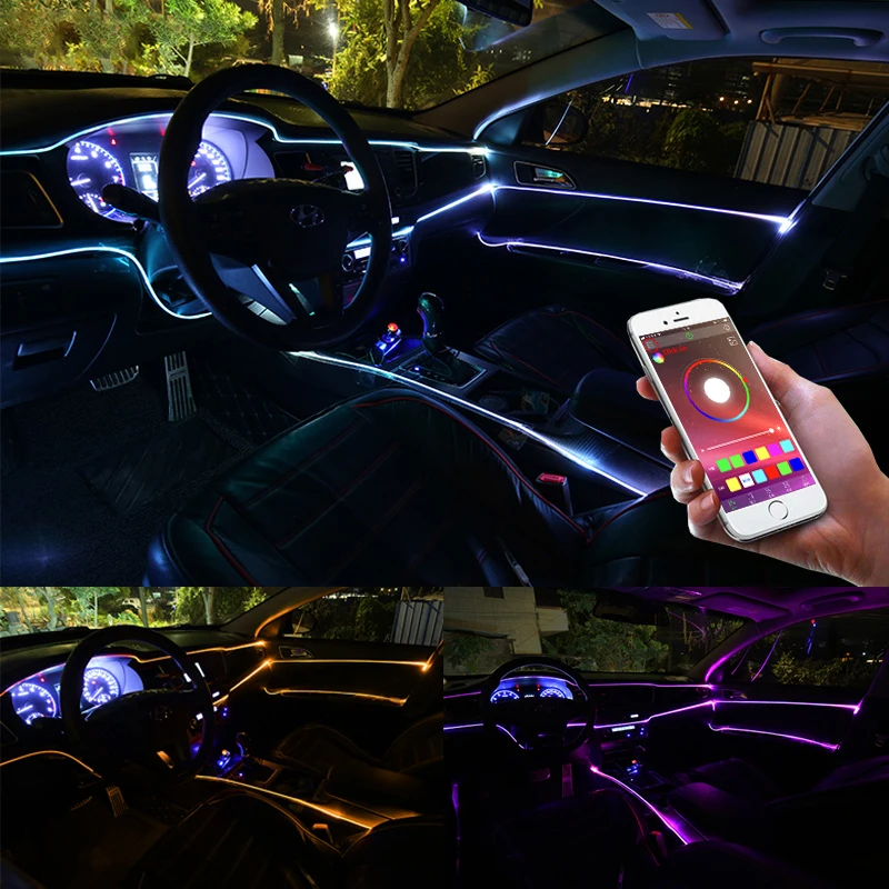 Niscarda 6 м Bluetooth приложение управление активный EL неоновый провод полосы светильник RGB светодиодный декоративный приборной панели двери подсветка салона авто атмосферный аксессуары для авто