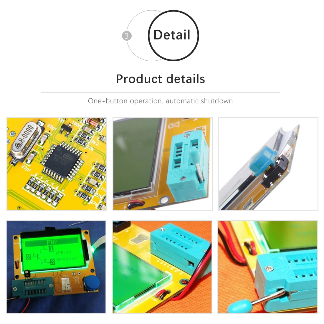 4. Автоматическое обнаружение транзисторов NPN и PNP, n-канального и p-канального МОП-транзистора, диода (включая двойной диод), тиристора, транзистора, резистора, конденсатора и других компонентов5. Может обнаруживать транзистор, коэффициент усиления защитного диода полевого МОП-транзистора и основание для определения прямого смещения эмиттерного транзистора