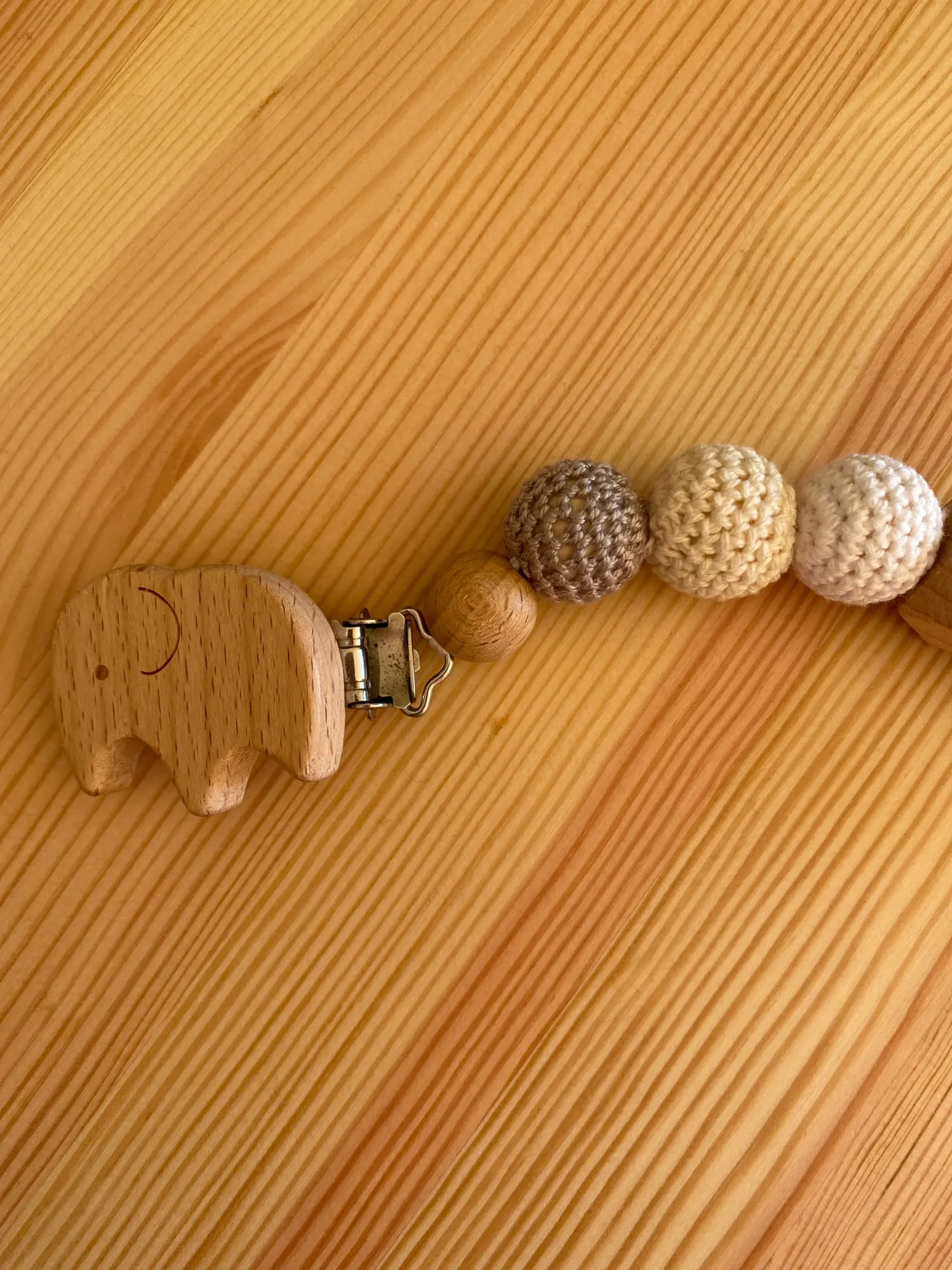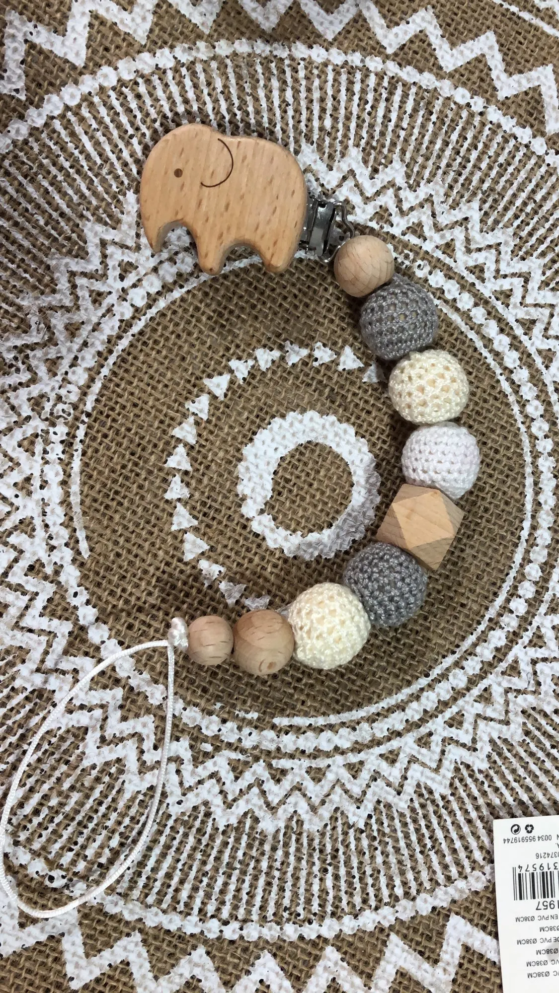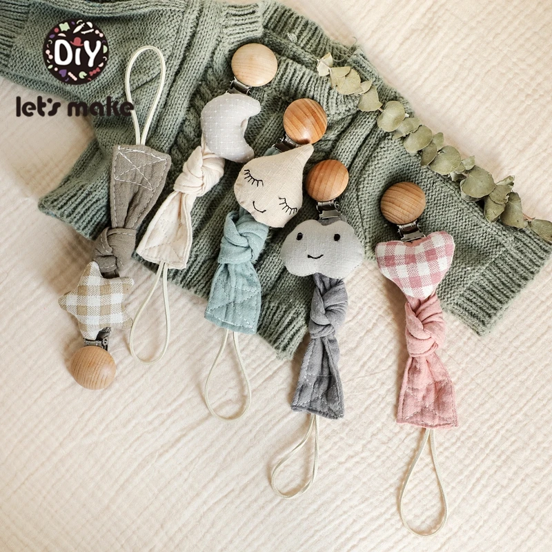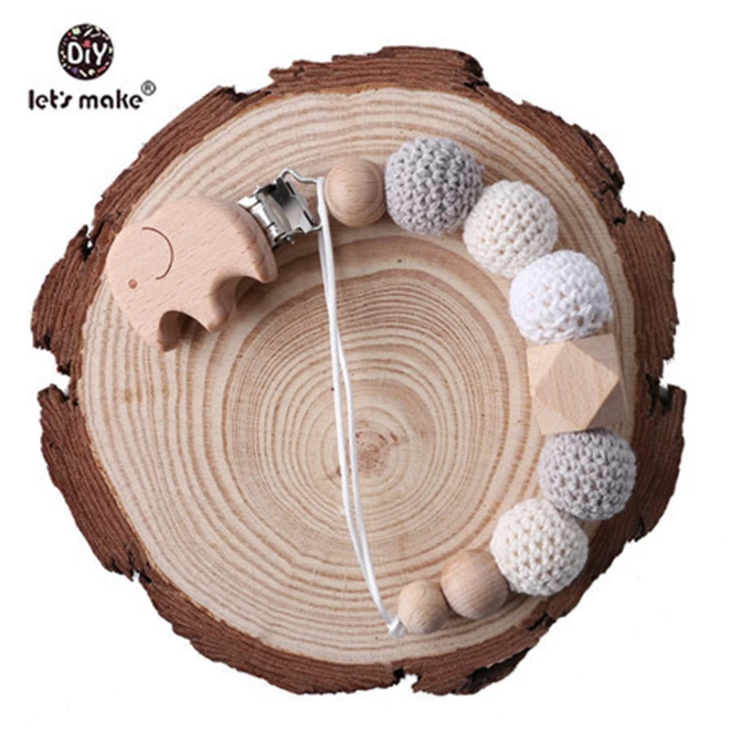 Детская Соска-пустышка Let's Make, 1 шт., цепочка для соски, слон, деревянный зажим, геометрический вязаный крючком, Искусственный деревянный прорезыватель, крошечный стержень