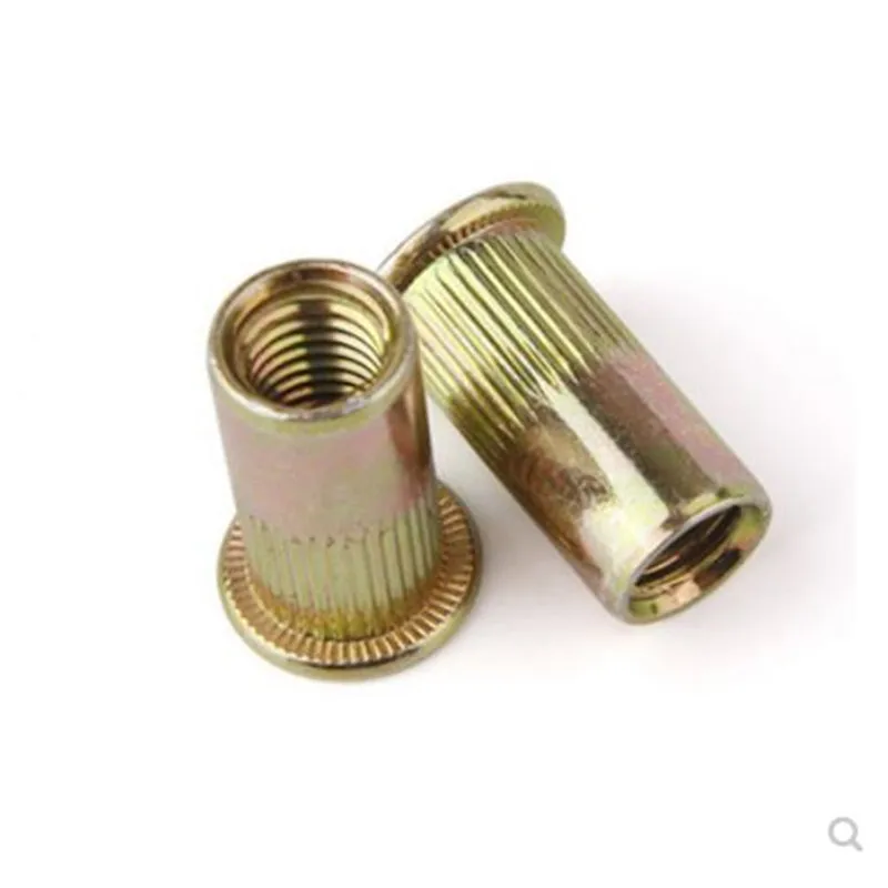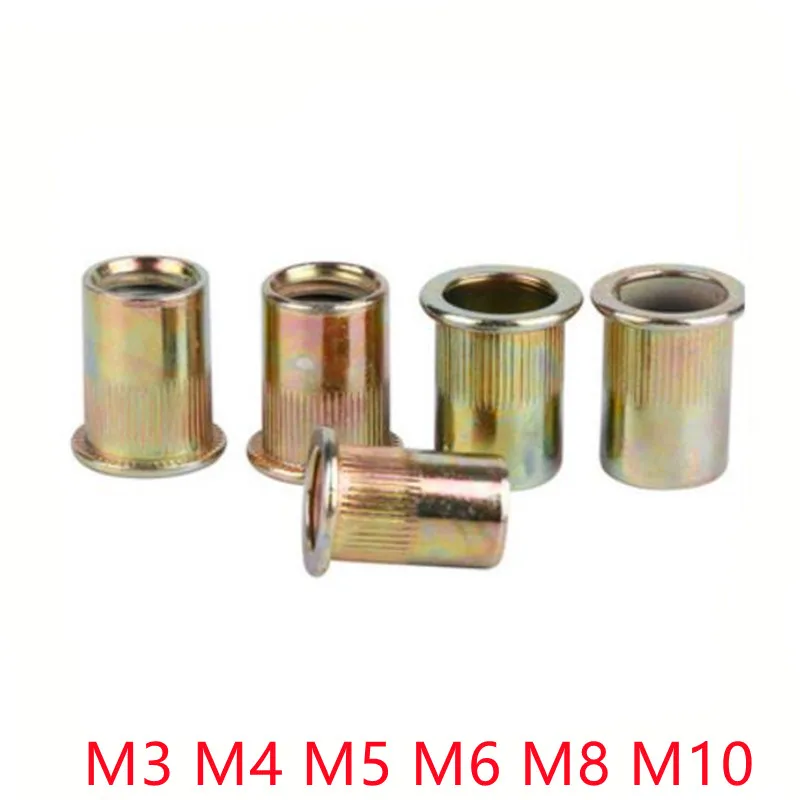 100-500 шт. M3 M4 M5 M6 M8 M10 заклепочная гайкарифленая головка из углеродистой стали с плоской головкойзаклепочная гайка с плоской головкой