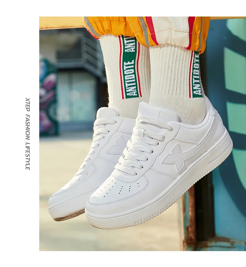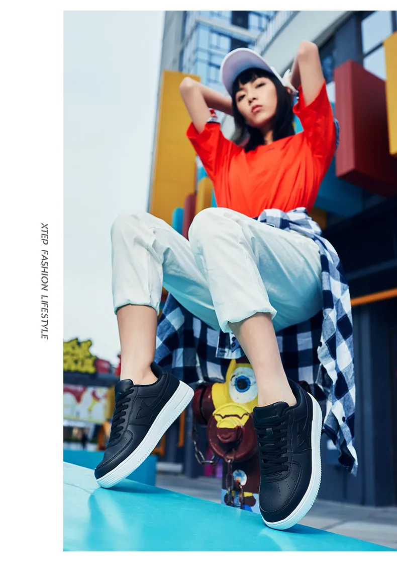 Кроссовки Xtep Женские для скейтборда, удобная повседневная обувь для скейтборда, белые, черные, 881218319851