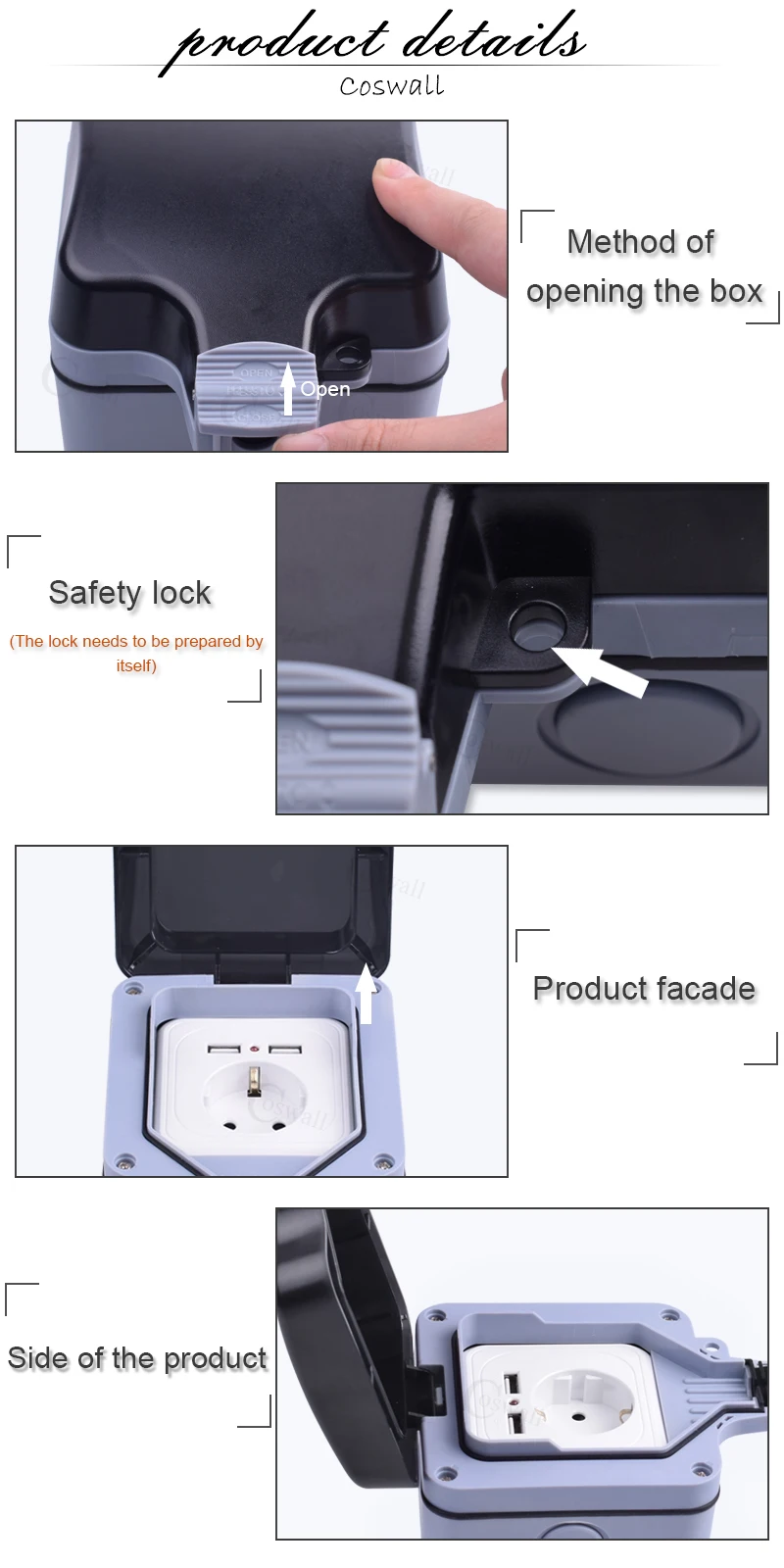 Погодостойкая Водонепроницаемая наружная настенная розетка Coswall ...