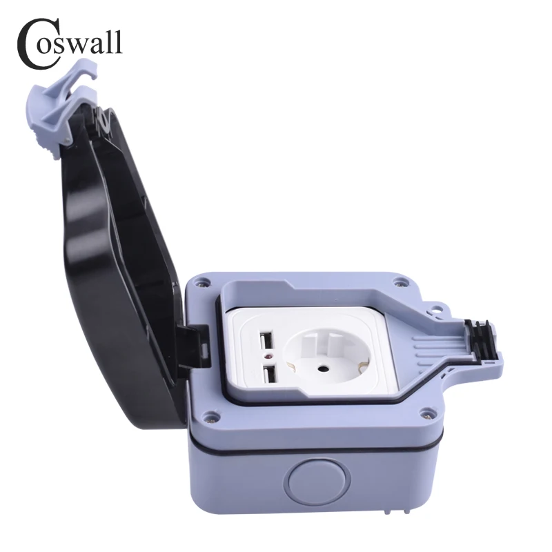 Coswall IP66 водонепроницаемый наружный стандарт 16A ЕС настенная розетка с двойным usb-портом для зарядки 2.4A выход