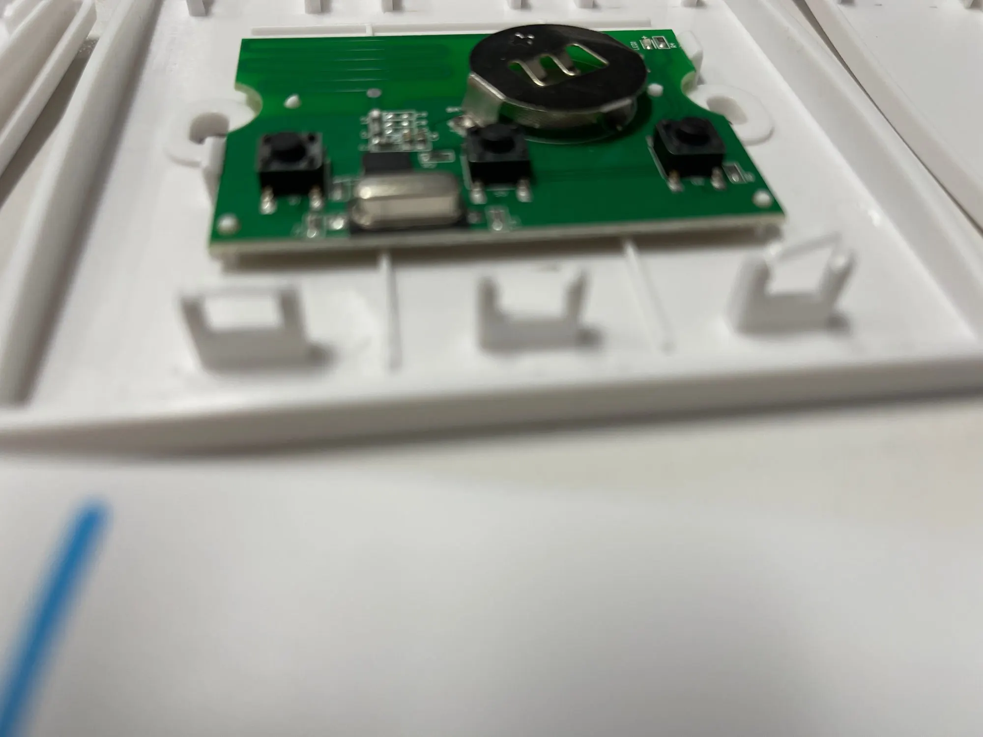пластик дешёвый, но без заусенцев гладкий и на ощупь скользкий, нужна батарейка 2032, срабатывание с хорошо слышимым кликом и в руку отзыв тоже норм, оно и понятно - внутри одна тактовая кнопка. индикатор при нажатии синий диод просвечивает сквозь пластик еле еле, днем при хорошем свете не видно.