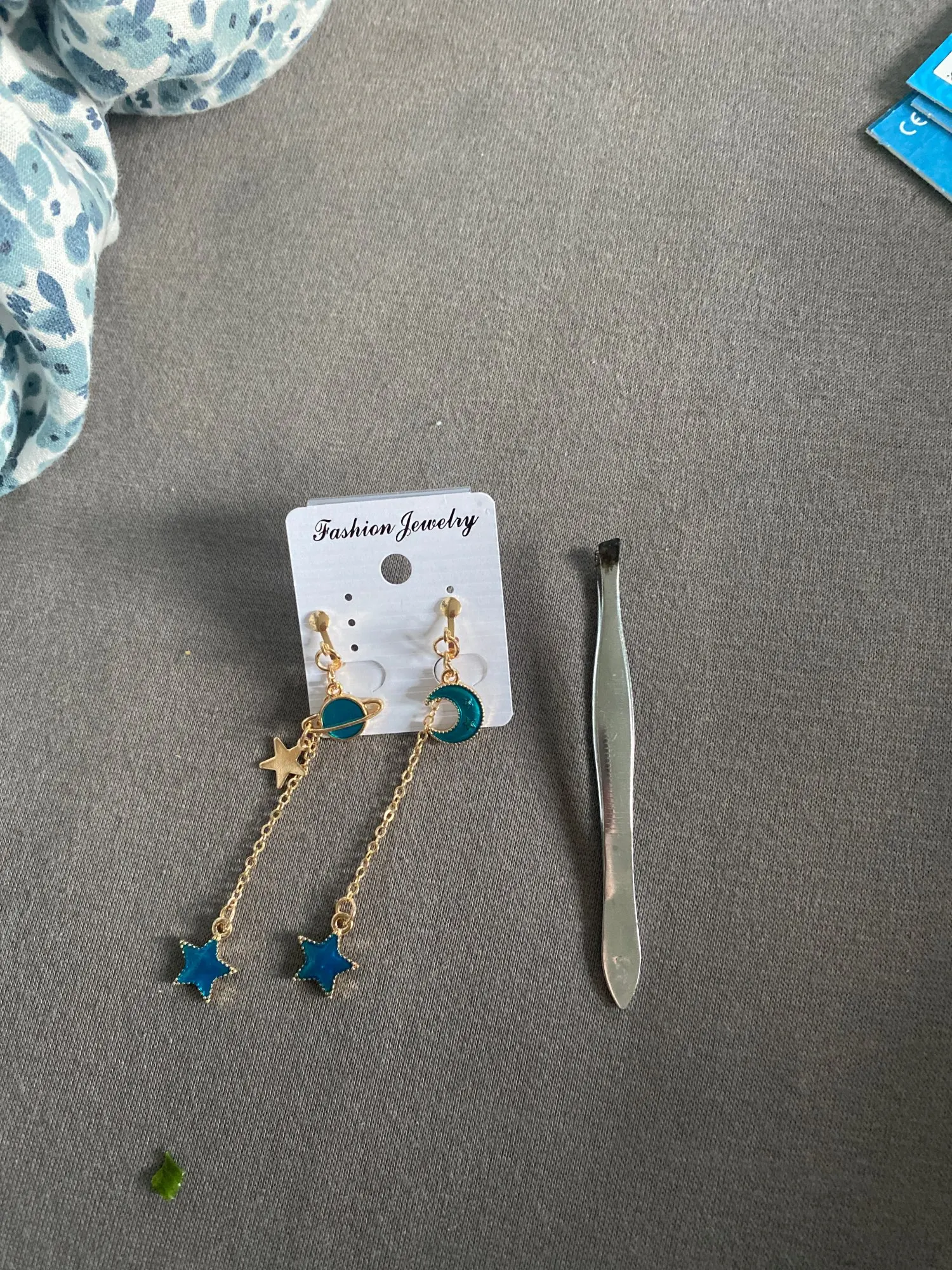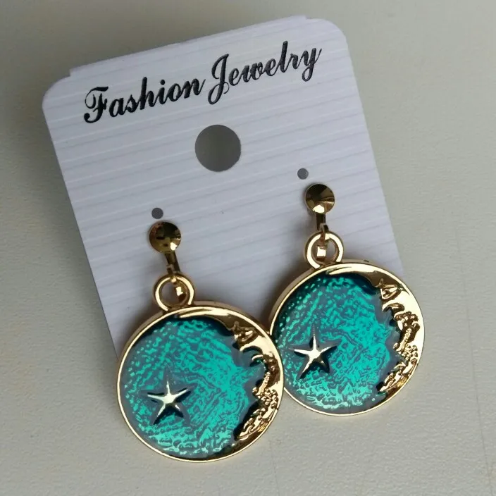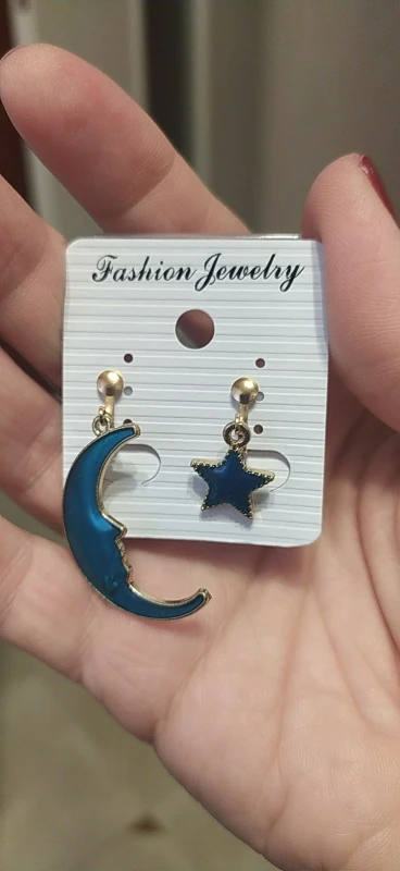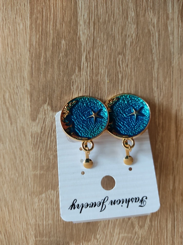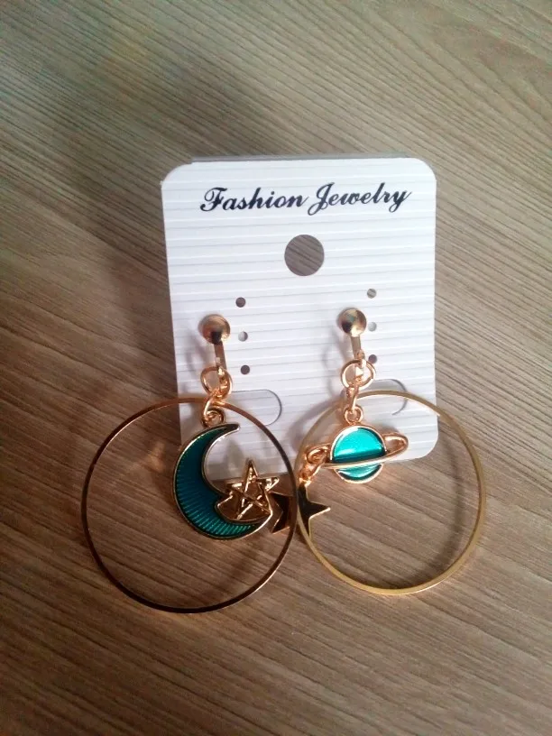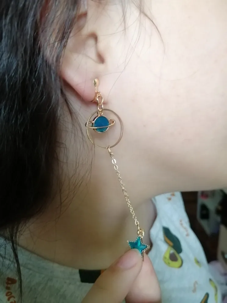 Ассиметричные серьги-клипсы в Корейском стиле, с синей эмалью, звездой, луной, планетой, без пирсинга, для девочек и женщин, подарок на вечеринку