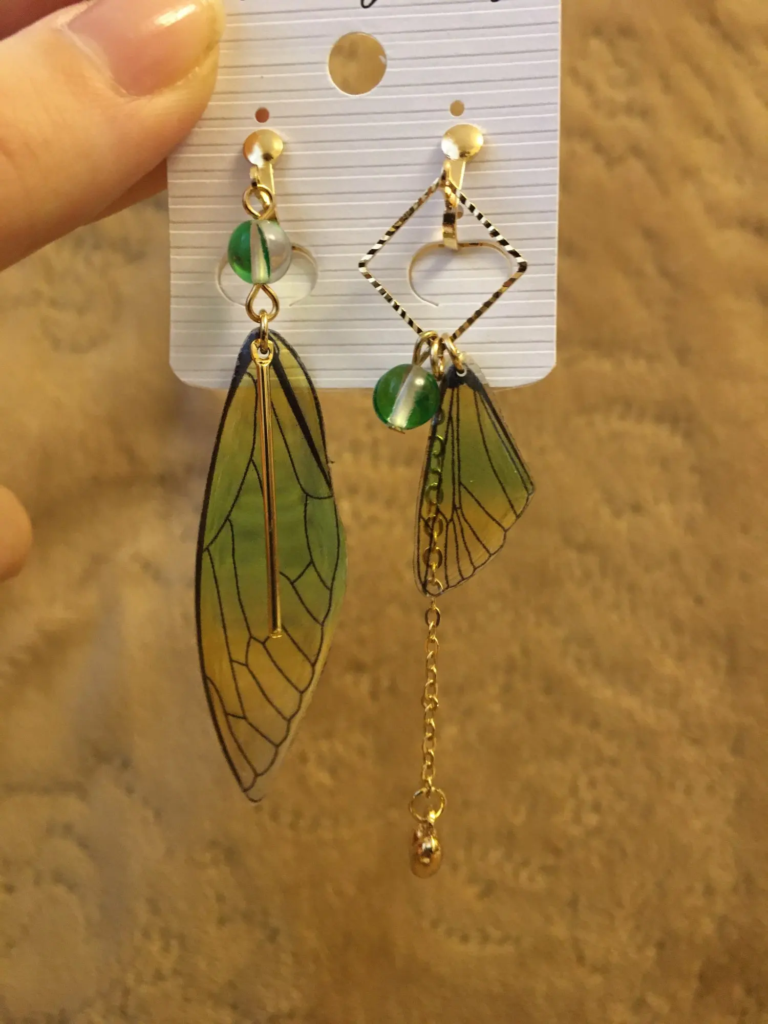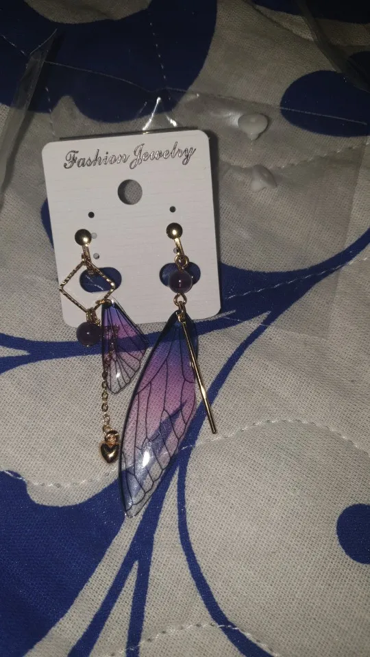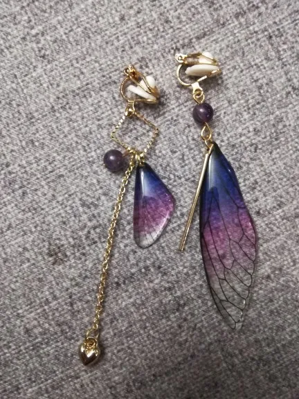 Очень понравились серёжки, взяла их не раздумывая. Срок доставки быстрый, чуть больше двух недель. Крылышки сделаны очень реалистично. Сами серёжки не тяжёлые. Единственное что меня не устроило, то что защелка у неё клипсы, но сама виновата, не посмотрела. Для меня это очень непривычно, поэтому буду переделывать.