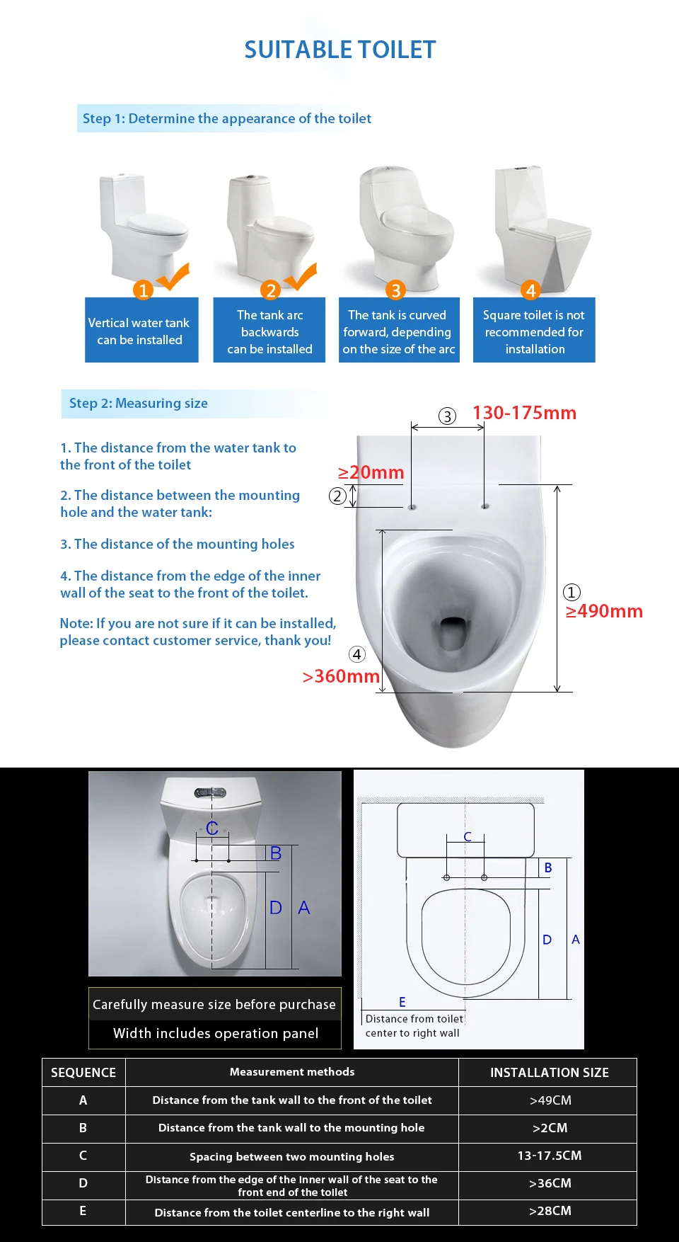 Пожалуйста, измерьте унитаз в соответствии с инструкциями на рисунке и выберите правильную модель биде для вашего унитаза. Если вы не знаете, как выбрать, пожалуйста, свяжитесь со службой поддержки клиентов, спасибо!