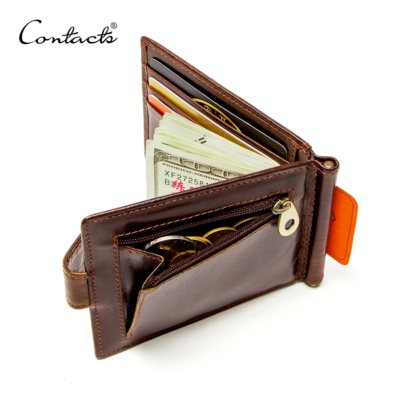 CONTACT'S Мужской тонкий кожаный двойной бумажник для денег и 10 карт с застежками молния кошелек для монет на молнии 2019