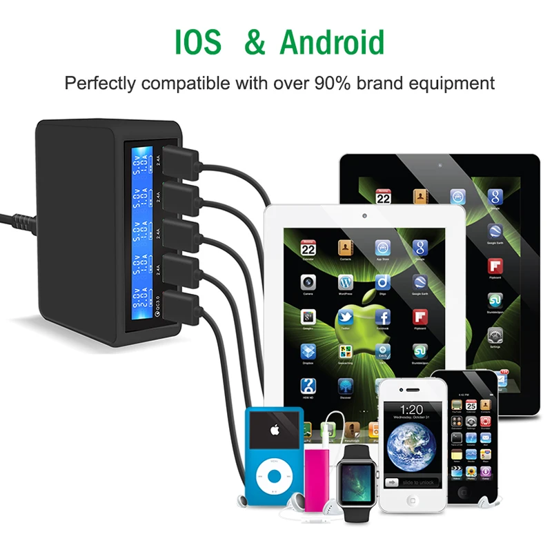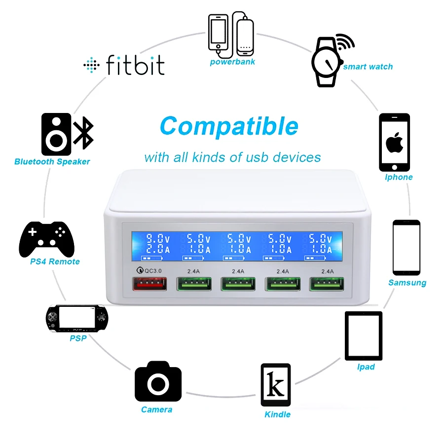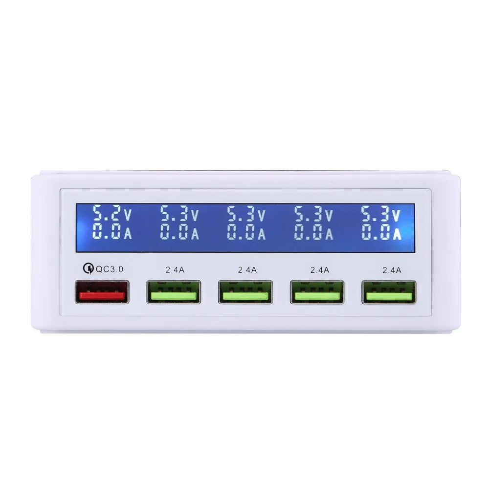 Зарядная станция AIXXCO 818 с 5 USB-портами и поддержкой быстрой зарядки 3.0, 40 Вт, черногобелого цвета