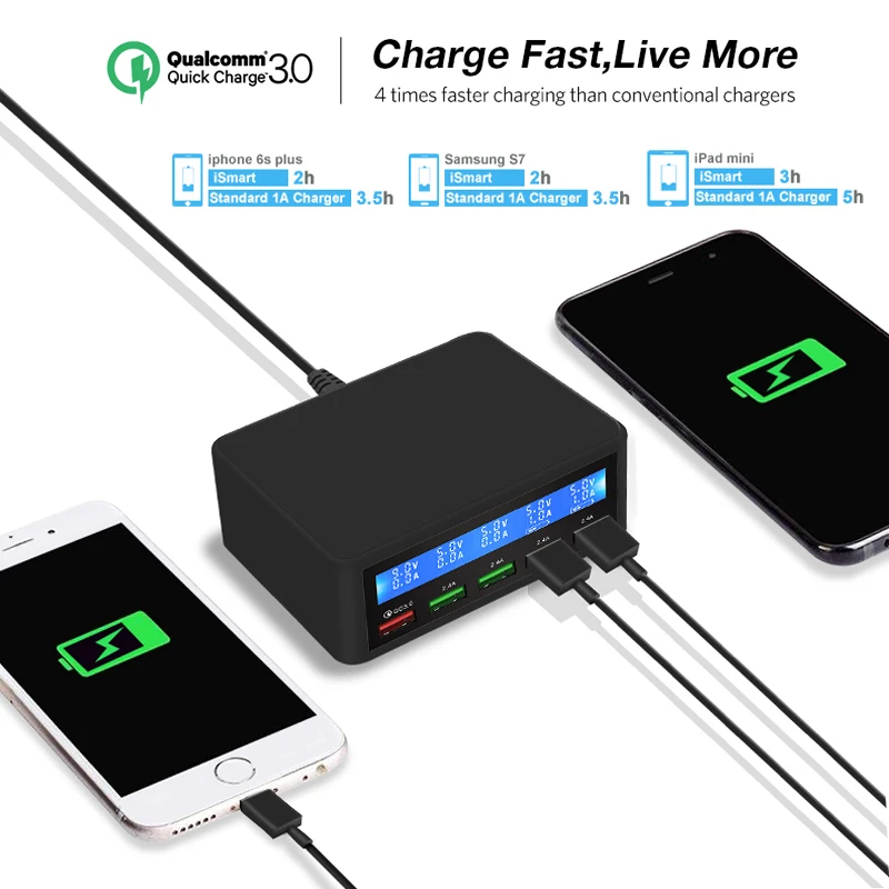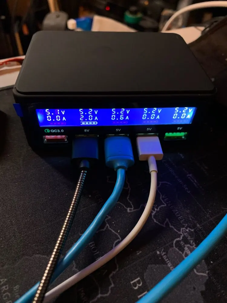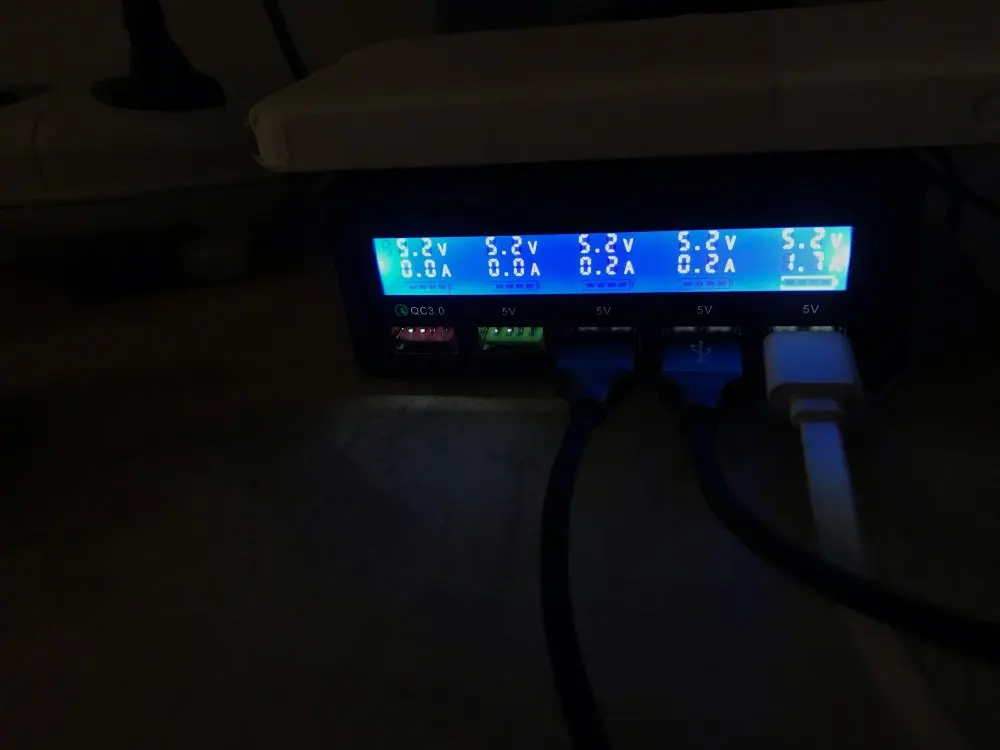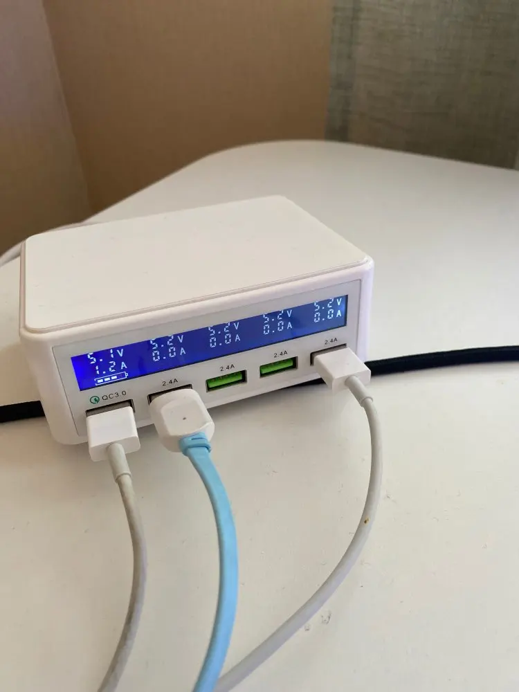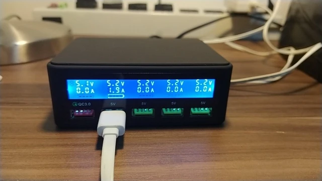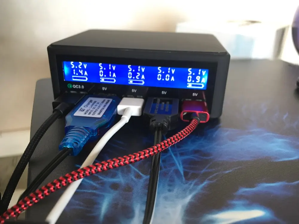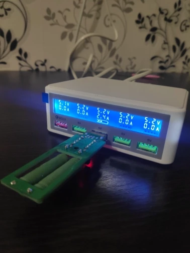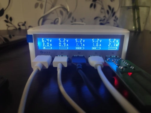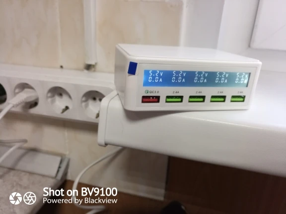 Заказал 11.11.2020, пришла 30.11.2020. Качество сборки очень понравилось. Дисплей яркий, шрифт отчётливый. Работает хорошо. Все показатели и порты в норме. QC3.0 отлично заряжает. Впервые увидел чтобы мой телефон заряжался больше 2А. Подключил Usb tester, нагрузку и проверил точность показаний: Амперы показывает довольно точно, а Вольты.. на приборе показывает 5.2В, но по факту проседает при нагрузке 3А до 4.9В На фото: 1. Pocophone f1 2. Iphone 7+ 3. Redmi s2 4. Redmi note 4x 5. Нагрузка в 2.2А Теперь посмотрим сколько прослужит. К покупке рекомендую, особенно для сервисных центров.
