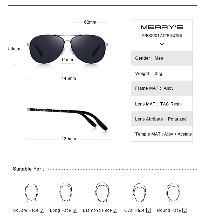 Мужские Солнцезащитные очки-авиаторы MERRY'S, брендовые дизайнерски...
