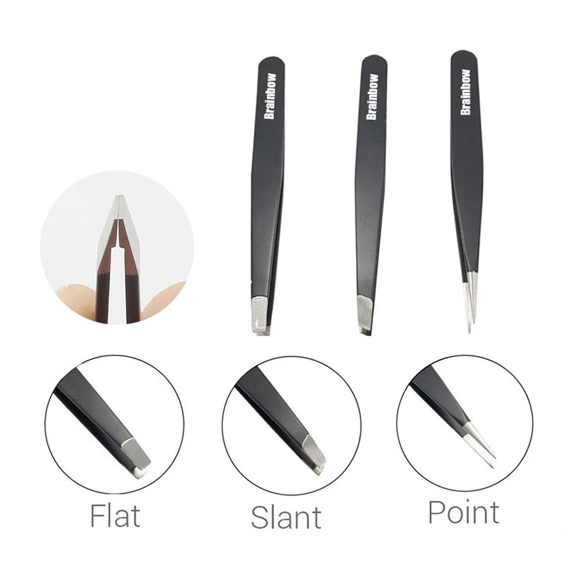 Пинцет Brainbow 3 шт.компл., пинцет для бровей из нержавеющей стали для глаз, инструменты для удаления волос на лице, аппликатор для наращивания ресниц на веке